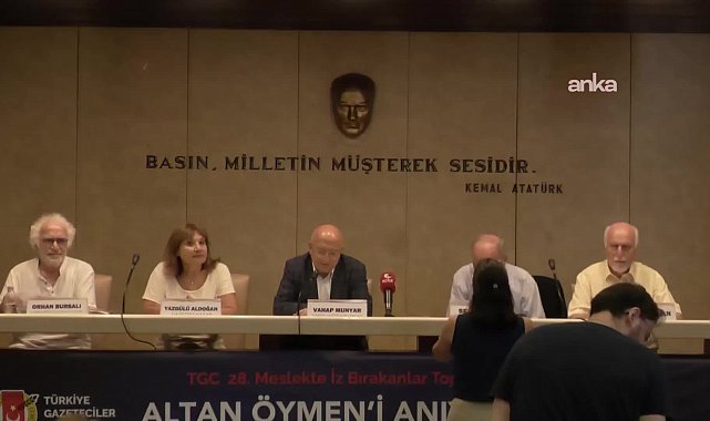 (İSTANBUL) Türkiye Gazeteciler Cemiyeti (TGC), ‘Meslekte İz Bırakanlar’ Toplantısıyla Onur Kurulu Başkanı Altan Öymen’i andı. Toplantıda Altan Öymen’in dostları, çalışma arkadaşları, gazeteciler, yazarlar ve aile üyeleri söz aldı.Türkiye Gazeteciler Cemiyeti (TGC), ‘Meslekte İz Bırakanlar’ toplantılarıyla gazeteci ve yazarların dünya görüşlerini, eserlerini üyeleriyle paylaşmayı sürdürüyor. TGC, Onur Kurulu Başkanı Altan Öymen’i Meslekte İz Bırakanlar Toplantısı’yla 28 Temmuz 2025 Pazartesi günü TGC Burhan Felek Konferans Salonu’nda andı. Toplantıda Altan Öymen’in dostları, çalışma arkadaşları, gazeteciler, yazarlar ve aile üyeleri söz aldı. Toplantı iki oturumdan oluştu.Birinci oturumun başkanlığını TGC Başkanı Vahap Munyar yaptı. Oturumun konuşmacıları T24 Yazarı Yalçın Doğan, Gazete Oksijen Yazarı Sedat Ergin, Cumhuriyet Gazetesi Yazarı Orhan Bursalı ile Gazeteci-Yazar Yazgülü Aldoğan oldu.