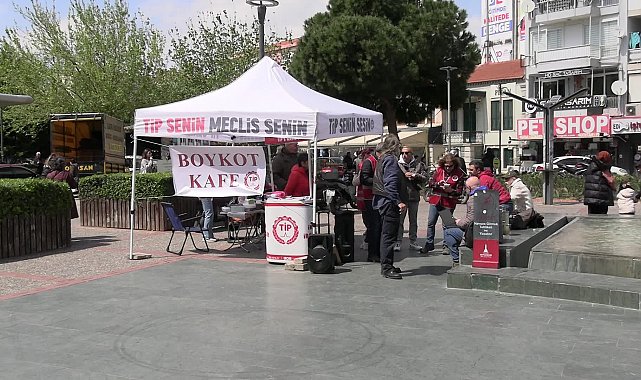 (İZMİR) – Türkiye İşçi Partisi (TİP) İzmir İl örgütü, Karşıyaka'da ''Boykot Kafe'' kurdu.Karşıyaka İZBAN durağında kurulan stantta vatandaşlara çay, kahve, meyve suyu, börek ve kek ikramında bulunulurken, TİP üyeleri, vatandaşları ''büyük marketlerden alışveriş yapmamaya, yerel üretimi ve dayanışmayı büyütmeye'' çağırdı.TİP Üyesi Ayşe Kutucu, burada yaptığı açıklamada, ''Hükümetin almış olduğu ekonomik ve siyasi politikalar ile ülkedeki diktatörlüğün sona ermesi için boykot çağrısı yapıyoruz. İsyandayız diyoruz. Herkesi bu boykota davet ediyoruz. TİP Karşıyaka Şubesi olarak burada bir stant açtık, adını da ‘Boykot Kafe’ koyduk. İnsanlar büyük mağazalardan alışveriş yapmasın diye burada ev yapımı börek, kek ve çay ikram ediyoruz. Ülkemizin sosyal bir hukuk devleti haline gelebilmesi için bu mücadeleyi sürdürüyoruz'' dedi.Boykota destek vermek üzere alana gelen vatandaşlardan Buse Bakarbulut, ''Çok güzel bir girişim olarak görüyorum bunu. Birlik ve beraberlik duygusu için buradayım. Yapabileceğim bir şey varsa yardımcı olabilmek, destek olabilmek için geldim'' diye konuşurken, Necdet Yeşilova ise "Ekrem İmamoğlu çıksın artık gari... Gelsin beraber olalım. İşinin başına geçsin" dedi.