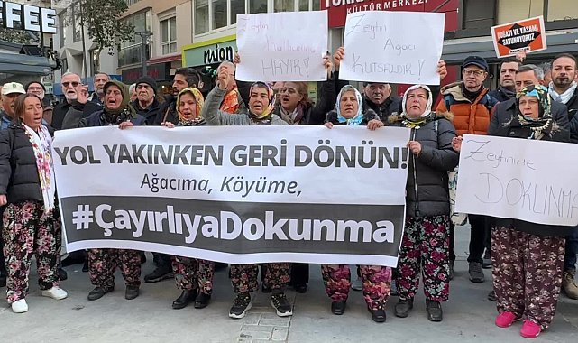 Konak ilçesi Türkan Saylan Kültür Merkezi önünde basın açıklaması yapan mahalle sakinleri "Yol yakınken geri dönün. Çayırlı'ya dokunma" yazılı pankart açarak, bir kez daha yetkililere seslendi."Bizlerin yüreği yanıyor"Burada basın açıklamasında bulunan mahalle sakinlerinden Zehra Yıldırım, "Biz bugün burada kendimizi ifade etmek, ağaçlarımızın kesilmesini önlemek için buradayız. Önceliğimiz ağaçlarımızın kesilmemesi. Zeytin ağaçlarımıza dokunulmaması. Ormanlarımızın talan edilmemesi, bizlerin yüreği yanıyor. 150, 250, 300 değil, yol boyunca binlerce zeytin ağacı katliama uğrayacak. Bu zeytin ağaçları 15-20 senelik fidan değil. 100-150 senelik bir ağaçtır. Bunun bilinmesini, bu katliamın durdurulmasını istiyoruz. Asla vazgeçmeyeceğiz. Çam ağaçlarımızdan, incir ağaçlarımızdan, zeytin ağaçlarımızdan asla vazgeçmeyeceğiz. Sonu nereye giderse gitsin, Ankara mı? Ankara. Biz buradayız. Ağaçlarımızın yanındayız. Asla vazgeçmiyoruz" dedi."Ben çocuklarıma duble yol bırakacağım"Fethiye Yıldırım ise "Bizim nefesimiz kesiliyor. Bizim ağaçlarımız, emeğimiz, ekmeğimiz gidiyor elimizden. Biz burada bir gösteri yapıyoruz ama bize çapulcu diyorlar. Biz çapulcu değiliz. Biz köylüyüz. Biz köylüyüz, cahiliz ama aptal değiliz. Biz emeğimizin peşindeyiz. Biz ekmeğimizin peşindeyiz. Bizi sürekli oyalıyorlar. Asla ve asla vazgeçmeyeceğim. Çünkü bu bizim ekmeğimiz, emeğimiz. Bizim geçim kaynağımız yok. Tek geçim kaynağımız bizim zeytin ağacımız. Nefesimizi kesmek üzereler. Nefesimizi boğmak üzereler. En son çaremiz dozerin önünde yatıp mezarımı kazıp içine gömecekler. Tek yapacağımız şey bu. Benim emeğim elimden gittikten sonra en son yapacağımız şey budur. Bize dediler ki orası hazine arazisidir. Asla inanmayın kardeşlerim. Bakın hepimizin tapusu elimizde. Asla inanmayın. Hepimizin tapulu arazimiz bunlar bizim. Tapulu atamızdan kalan araziler, babam bana ben çocuklarıma bırakacağım. Ama maalesef ben çocuklarıma duble yol bırakacağım. Başka hiçbir şey yok. Çam ağaçlarını kesmeye başladılar. Bu çam ağaçlarını bile diz diktik" diye konuştu."Tarlanın içine mezar yapıp kendimi gömeceğim"Birsen Keskin de "Ben bu katliamın olmasını istemiyorum. Ekmeğimin elimden almasını istemiyorum. Asla ormanıma dokunmayın. Zeytinime dokunmayın. İncirime dokunmayın. Asla bunu istemiyorum. Elimden ekmeğimi almayın. O benim tek umudum tek ekmek teknem. Olursa tarlanın içine mezar yapıp kendimi gömeceğim" dedi."Bizi de öldürsünler öyle girsinler"Tülay Yıldırım da "Köyün altından geçecekken bu yol aniden köyün üstüne döndü. Onlarca zeytin ağaçlarımız gidiyor. Ben burayı alırken kredi çektim, onun kredisini ödüyorum. Ben evime bu ağaçlarla bakıyorum. Evime kendimize bu krediyi ondan ödüyorum. Ağacımız kesilecek. Ekmek teknemizi hayatta vermem ağaçlarımı sonuncu ne olursa olsun. Bizi de öldürsünler öyle girsinler. Köyün altında da 5-10 tane zengin var. Onlar topraklarımız ikiye ayrılmasın diye yapıyorlar. Biz fakirler ne yapacağız? Bizi hiçe sayıyorlar. Bize sahip çıkın. Biz köylüyüz. Köylü olmasa hiçbir şey olmaz. Biz üreteniz, onlarca işlerimizi bıraktık geldik. Ağaçlarımıza sahip çıkmaya. Bize sahip çıkın ne olur" diye konuştu."Köylüler yola karşı değil"Selçuk ilçesinden gelerek Çayırlı Mahallesi sakinlerinin eylemine destek veren Tekin Karadağ ise "2017'de alınan kararla bütün ovadan gelen yol ne hikmetse bir ay içinde yolun üstüne alınıyor. Siyasi bir karar. Çıkarcıların aldığı perde arkasındaki bir hiledir. Köylüler yola karşı değil. Ama yolun güzergahı belliyken düzden giderken, ağaçsız çıplak bir araziden giderken ne hikmetse neden köyün üstüne aldılar? Bunu duysun hükümet. Bu insanlar ölümüne bakın. Ağacına kıymak demek öldürmek demektir. Ölürüz, toprağımızı, ballı incirimizi, zeytinimizi, ormanımızı, doğamızı katletmeye müsaade etmeyeceğiz. Bütün Türkiye duysun" ifadelerini kullandı."Biz yolu değil adaletsizliği reddediyoruz"Eyleme destek veren İzmir Kent Konseyi Başkanı Özgür Topaç da "Bugün burada sadece ağaçlarımızı değil emeğimizi, geleceğimizi, çocuklarımızın yarınını savunmak için toplandık. Bu topraklar bizim. Bu ağaçlar bizim. Bu bereket bizim. Yüzyıllardır İzmir'in bereketini taşıyan zeytin ve incir bahçelerini yok edecek bir proje asla sessiz kalmayacağız. Biz yolu değil adaletsizliği reddediyoruz. Mevcut yol genişletebilecek binlerce ağacın kesilmesini gerektiren bir güzergah değişikliğini kabul etmiyoruz. Bu ağaçlar sadece birer kütük değil. Dedelerimizin, ninelerimizin elleriyle büyüttüğü, bizden sonraki nesillere bırakacağımız emanetleridir. İzmir Kent Konseyi olarak Tire'nin yanındayız. Çayırlı halkının yanındayız. Zeytinimize, incirimize, toprağımıza sahip çıkacağız. Bu toprakların gerçek sahipleri olarak 'dur' diyeceğiz. 'Gelin bu yanlıştan dönün' diyeceğiz. Çayırlının şu sesine lütfen kulak verin: Zeytinlerimize dokunmayın. İncir bahçelerimizi talan etmeyin. Çayırlı susmayacak, Tire susmayacak. İzmir susmayacak, İzmirli susmayacak. Bu mücadele hepimizin" ifadelerini kullandı.