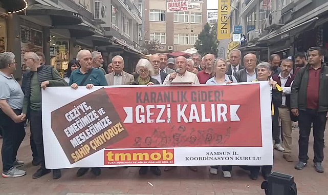 (SAMSUN)- TMMOB Samsun İl Koordinasyon Kurulu sekreteri Veli Kebapçı, "Dostlarımız suç işledikleri için değil, halkın çıkarlarını savundukları için, Taksim Meydanı’na ve Gezi Parkı’na sahip çıktıkları için, iktidarın rant projelerine karşı çıktıkları için, mesleki sorumluluklarının gereğini yerine getirdikleri için cezaevindeler. Gezi Direnişi nasıl ki bu ülkenin yüz akı ve onurlu tarihinin bir parçasıysa, Gezi Davası’nda tutuklanan arkadaşlarımız da bizim yüz akımız ve onurlu tarihimizin bir parçasıdır" dedi.
