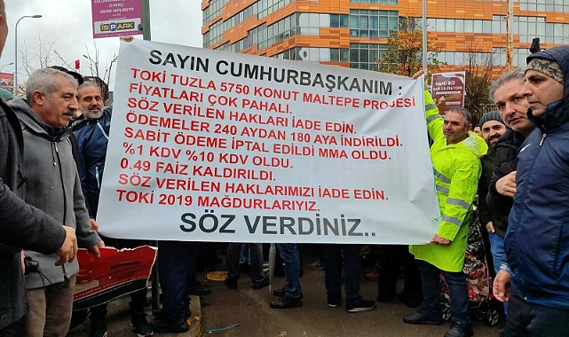 Toplu Konut İdaresi Başkanlığı’nın (TOKİ) 2019 yılında başlattığı “100 Bin Alt Gelir Grubu Sosyal Konut Projesi” kapsamında hak sahibi olan, ancak konutlarının 4 yıldır teslim edilmemesi ve konut fiyatları ile taksitlere yapılan zamlar nedeniyle mağdur olduklarını söyleyen vatandaşlar bugün İstanbul Çevre, Şehircilik ve İklim Değişikliği İl Müdürlüğü önünde eylem yaptı.
