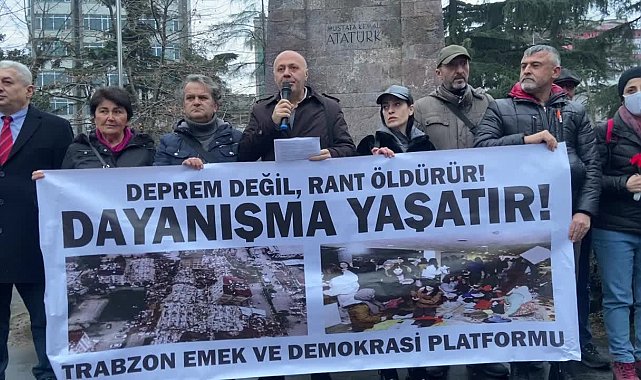 Trabzon Emek ve Demokrasi Platformu, 6 Şubatta 2023 tarihinde Kahramanmaraş merkezli depremlerde hayatını kaybeden vatandaşları andı. Trabzon Emek ve Demokrasi Platformu adına konuşan Muhammet İkinci, "Devletin bir anonim şirket gibi yönetilmesinin, iktidarın devleti adeta inşaat şirketlerine teslim etmesinin, denetimsizliğin, kamuya ve yatırımlara yeterince bütçe ayrılmamasının faturası 6 Şubat depremi ile başta hayatını kaybeden vatandaşlarımız olmak üzere halka, depremzedelere yıkılmıştır" dedi.