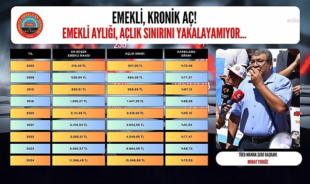 (İSTANBUL)- Türkiye Emekliler Derneği (TÜED) Mamak Şube Başkanı Murat Tokgöz, “Geçtiğimiz günlerde gönderdiğimiz ‘abaküse’ rağmen hesabın içinden çıkamayan TÜİK’e kayyum atanmalı. Hani olmaz da belki insafa gelip rakamları çarpıtmaz düşüncesiyle TÜİK’e de kayyum atanmasını tek çıkar yol olarak görüyoruz” açıklamasını yaptı.TÜED Mamak Şube Başkanı Murat Tokgöz, emeklilerin durumuna ilişkin yazılı açıklama yaptı. Emeklilerin yıllardır açlık sınırının altında kalan gelirleriyle yaşam mücadelesi verdiklerine dikkat çeken Tokgöz, “Emekliler artık kronik açlardır. 2002 yılında en düşük emekli aylığı 216,40 TL iken açlık sınırı ise 307 TL’dir. Yani en düşük emekli aylığı, açlık sınırının sadece yüzde 70,49’unu karşılayabiliyordu. Aradan geçen yıllarda da bu tablo hemen hemen hiç değişmeden süregeldi. 2024 yılı başında 11 bin 366,45 TL olan en düşük emekli aylığı, 15 bin 48,89 TL olan açlık sınırının yüzde 75,53 karşılamaktadır. Bugün için en düşük emekli aylığı 12 bin 500 TL, açlık sınırı ise 20 bin 431 TL’ye yükselmiştir. Karşılama oranı ise yüzde 63,45’e düşmüştür” ifadelerini kullandı.Emekli maaş zamlarının, Türkiye İstatistik Kurumu’nun (TÜİK) enflasyon verilerine göre hesaplandığını hatırlatan Tokgöz, “Geçtiğimiz günlerde gönderdiğimiz ‘abaküse’ rağmen hesabın içinden çıkamayan TÜİK’e de kayyum atanmalı. Hani olmaz da belki insafa gelip rakamları çarpıtmaz düşüncesiyle TÜİK’e de kayyum atanmasını tek çıkar yol olarak görüyoruz” ifadelerine yer verdi.“Bu ayıbın önüne geçilmeli”Et ile kıymanın yanı sıra uzun zamandır kuru fasulyenin ve nohudun tadını unutan emeklilerin, karnabaharla ve brokoliyle de aralarının açıldığını belirten Tokgöz, şunları kaydetti:“Emekli aylıkları temmuz ayında zamlanmasına rağmen açlık sınırıyla emekli aylığı arasındaki fark yüzde 37’ye yükselmiştir. Bir başka ifadeyle aradan geçen 10 aylık sürede zaten yetmeyen emekli aylıklarının alım gücü yüzde 12 daha azaldı. Eskiden sebze ağırlıklı beslenirken şeker-tansiyon gibi hastalıklarımızı bahane edip kendimizi avuturduk. Şimdilerde ise brokoliyle bile aramıza mesafe koymak zorunda kaldık. Hava kararırken semt pazarlarındaki manzara bir insanlık dramıdır. Hayatının en verimli dönemlerini bu ülkeye hizmet etmek için geçiren beli bükülmüş, sakalları ağarmış insanlara minnet duyulması gerekirken böyle bir dramın yaşatmaya kimsenin hakkı yoktur. Hükümet yetkililerinin biran evvel bu manzarayı görmesi ve bu ayıbın önüne geçmesi gerekir.”