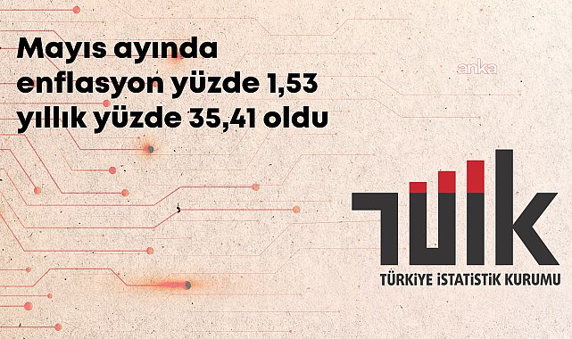 (ANKARA) - Türkiye İstatistik Kurumu (TÜİK), mayıs ayı enflasyon verilerini açıkladı. Buna göre, tüketici fiyat endeksi (TÜFE) aylık yüzde 1,53 artarken, yıllık enflasyon yüzde 35,41 oldu. Mayıs ayında bir önceki yılın aynı ayına göre artışın en yüksek olduğu ana grup yüzde 67,43 artış ile konutta olarak gerçekleşti.TÜİK, mayıs ayına ilişkin TÜFE verilerini açıkladı. TÜFE'deki değişim mayıs ayında bir önceki aya göre yüzde 1,53 artarken bir önceki yılın mayıs ayına göre yüzde 35,41 artış, on iki aylık ortalamalara göre yüzde 45,80 artış olarak gerçekleşti.TÜFE gıda ve alkolsüz içeceklerde yıllık yüzde 32,87 arttı