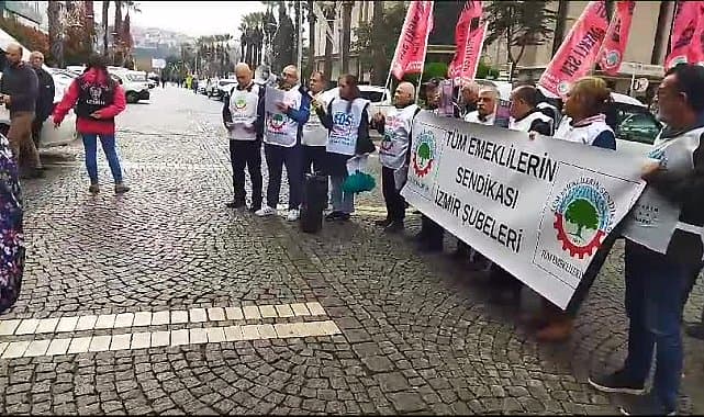Tüm Emeklilerin Sendikası İzmir Şubeleri, 10 Aralık Pazar günü Ankara'da düzenlenecek olan Büyük Emekli Mitingi öncesi İzmir'de yaptığı basın açıklamasıyla emeklileri mitinge davet etti. Devrimci İşçi Sendikaları Konfederasyonu'na (DİSK) bağlı Emekli Sendikası, Emekliler Dayanışma Sendikası ve Tüm Emekliler Sendikası, 'Emeklilikte ayrımcılığa, eşitsizliğe, adaletsizliğe' son demek için 10 Aralık Pazar günü saat 13:00'te Ankara Anıtpark'ta Büyük Emekli Mitingi düzenleyecek. Tüm Emeklilerin Sendikası İzmir Şubeleri, miting öncesi Konak Eski Sümerbank önünde basın açıklaması düzenledi. "Yalanlara teslim olmayacağız" sloganı atan emekliler, "Bizlerin ülkenin gelirlerinden aldığımız pay sürekli alırken, sermayenin aldığı pay ise sürekli arttı. Artık bu yalanlara kanmıyoruz dostlar. Hakların yasalardan önce geldiğini, kimsenin kimseye hak vermediğini, hakların ancak fiili ve meşru mücadeleyle kazanılacağını öğrendik. Haklarımızı almak için örgütlü mücadele yürütüyoruz, haklıyız ve gücümüzü de haklılığımızdan alıyoruz. Bu haklı mücadelemizi engellemek için yönetenler sürekli baskı uygulamaya devam ediyorlar" açıklamasını yaptı.10 Aralık Pazar günü Ankara'da düzenlenecek Büyük Emekli Mitingi'ne çağrı yapıldı.
