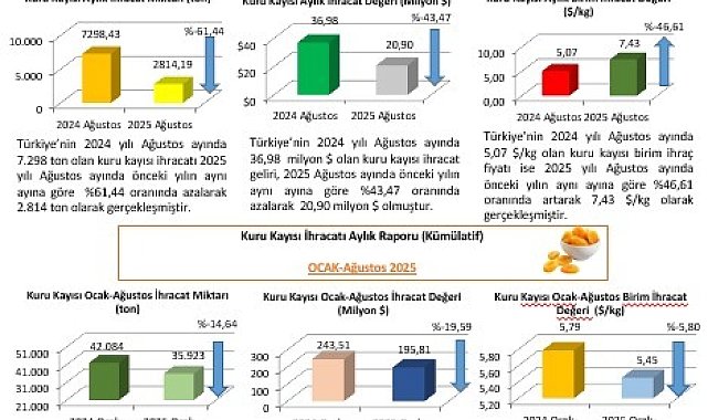 (MALATYA) - Malatya Turgut Özal Üniversitesi Kayısı ve Kayısı Ürünleri Geliştirme Uygulama ve Araştırma Merkezi’nin yayımladığı 2025 yılı ağustos ayı kuru kayısı dış ticaret raporuna göre, sektörde ihracat miktarı ciddi düşüş gösterdi. Geçen yılın ilk sekiz ayında 243 milyon dolar olan kuru kayısı ihracat geliri, 2025’in aynı döneminde yüzde 20 azalarak 196 milyon dolara geriledi.Raporda, Malatya ekonomisinin lokomotifi olan kuru kayısı ihracatında ağustos ayında geçen yılın aynı ayına göre yüzde 61’lik azalma yaşandığı, 2 bin 800 tona gerileyen ihracatın 21 milyon dolarda kaldığı belirtildi. Geçen yıl aynı dönemde bu miktar, yaklaşık 37 milyon dolar olarak gerçekleşmişti. Buna karşılık birim ihraç fiyatı geçen yılın aynı ayına göre 2,5 dolara yakın artarak 7,43 dolara yükseldi.Yılın ilk sekiz ayında (Ocak–Ağustos) toplam ihracat miktarı, geçen yılın aynı dönemine göre 6 bin ton azalarak 36 bin oldu. Rapora göre, birim ihraç fiyatı da aynı dönemde 0,35 dolara yakın gerileyerek, ortalama 5,45 dolara indi. Bu gelişmeler sonucunda geçen yılın ilk sekiz ayında 243 milyon dolar olan kuru kayısı ihracat geliri, 2025’in aynı döneminde yüzde 20 azalarak 196 milyon dolara geriledi.Zirai don etkisiRaporda ayrıca, 11–12 Nisan 2025 tarihlerinde Türkiye genelinde yaşanan zirai don felaketinin kayısı üretiminde yüzde 100’e varan ürün kaybına yol açtığı vurgulandı. Bu durumun ihracat miktarını azalttığına, birim ihraç fiyatını 7,5 dolar seviyelerine çıkardığına dikkat çekildi.