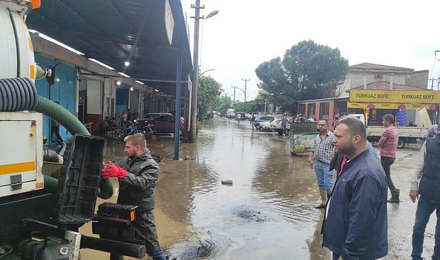 Turgutlu Belediye Başkan Yardımcısı Ahmet Daşkan, yaşanan kuvvetli yağış nedeniyle su baskınlarının yaşandığı Fatih Sanayi Sitesi’nde ve Cumartesi Pazarı’nda incelemelerde bulundu.Turgutlu Belediyesi Fen İşleri Müdürlüğü’ne bağlı ekipler, merkez ve kırsal mahallelerde etkili olan kuvvetli yağış ve fırtına nedeniyle herhangi bir sorun yaşanmaması adına yoğun mesai yaptı. Turgutlu Belediye Başkan Yardımcısı Ahmet Daşkan da Fen İşleri Müdürü Elif Ceren Müftüoğlu ile birlikte, su baskınlarının meydana geldiği Fatih Sanayi Sitesi’nde ve Cumartesi Pazarı’nda incelemelerde bulundu. Turgutlu Belediye Başkan Yardımcısı Ahmet Daşkan, “Fen İşleri Müdürlüğü ekiplerimiz, şiddetli yağmur ve fırtına nedeniyle sorun yaşanan noktalarda çalışmalarını gerçekleştirdi. Su baskınlarının yaşandığı Fatih Sanayi Sitesi'nde ve Cumartesi Pazarı’nda incelemelerimizi yaparak esnafımıza ve yoğun yağıştan etkilenen vatandaşlarımıza geçmiş olsun dileklerimizi paylaştık. Yağıştan zarar gören tüm hemşerilerimize bir kez daha geçmiş olsun diliyorum” dedi.