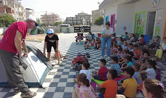 Turgutlu Belediyesi Kültür ve Sosyal İşler Müdürlüğü’ne bağlı faaliyet gösteren Turgutlu Belediyesi Dağcılık Akademisi (TURBELDAK) ekibi, Çocuk Kültür Sanat Merkezi (ÇKSM) öğrencilerine dağcılık ve doğa sporları eğitimi verdi. Turgutlu Belediyesi’nin Türkiye’de bir ilke imza atarak okul öncesi eğitimi ücretsiz yaptığı Mustafa Kemal Mahallesi Çocuk Kültür Sanat Merkezi öğrencileri dağcılık ve doğa sporları eğitimi aldı. Düzenlediği yürüyüş ve tırmanış etkinlikleriyle farklı yaştan doğaseverleri çevre bilinci oluşturmak ve doğayı tanıtmak için çeşitli parkurlarda buluşturan Turgutlu Belediyesi Dağcılık Akademisi ekibi, Çocuk Kültür Sanat Merkezi öğrencileri ile bir araya geldi. Etkinlik kapsamında TURBELDAK Yaz-Kış Yürüyüş Lideri Orhan Mert, ÇKSM öğrencilerine doğada kamp yapma, çadır kurma ve kamp alanında kullanılacak malzemeler hakkında bilgi verdi. Çocuklar, eğitimi dikkatli bir şekilde dinledikten sonra Çocuk Kültür Sanat Merkezi bahçesinde çadır kurulumunu yerinde görerek eğlenceli ve eğitici zaman geçirdi. Etkinlik hakkında açıklamalarda bulunan Turgutlu Belediye Başkan Yardımcısı Fırat Honaz, ”Çocuk Kültür Sanat Merkezi’mizde eğitim gören sevgili öğrencilerimiz dağcılık ve doğa sporları ile ilgili eğitim aldı. Çocuklarımızın her alanda kendilerini geliştirmelerini ve bu bağlamda sağlıklı bir gelişim süreci yaşamalarını istiyoruz. Bu kapsamda çocuklarımızla bir araya gelen Belediyemiz Dağcılık Akademisi ekibine ve emeği geçen herkese teşekkür ediyorum” dedi.
