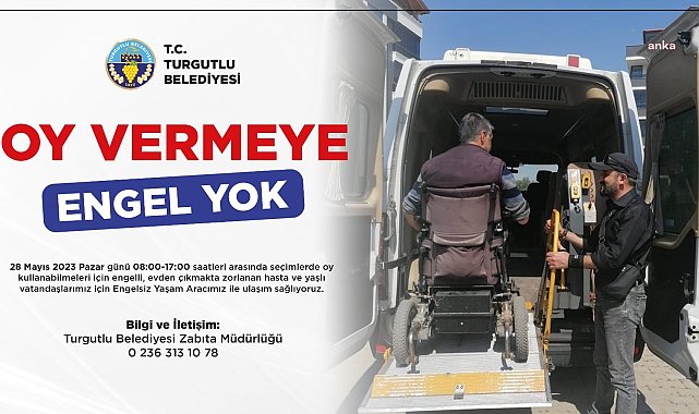 Turgutlu Belediyesi, 28 Mayıs Pazar günü yapılacak Cumhurbaşkanlığı 2. Tur Seçimleri’nde oy kullanacak özel gereksinimli vatandaşlara ücretsiz ulaşım desteği sağlayacak. Uygulama kapsamında Engelsiz Ulaşım Aracı, 28 Mayıs Pazar günü oy verme işleminin devam edeceği 08.00 – 17.00 saatleri arasında hizmet verecek.Turgutlu Belediyesi, 14 Mayıs Pazar günü gerçekleştirilen Cumhurbaşkanlığı ve 28. Dönem Milletvekili Genel Seçimleri’nde olduğu gibi 28 Mayıs Pazar günü yapılacak Cumhurbaşkanlığı 2. Tur Seçimleri’nde de özel gereksinimli vatandaşların demokratik hakları olan oy verme işlemini sorunsuz bir şekilde gerçekleştirebilmeleri için ücretsiz ulaşım desteği sağlayacak. Oy kullanacak özel gereksinimli seçmenler, ekipler tarafından belediyeye ait Engelsiz Ulaşım Aracı ile evinden alınıp oy kullanacağı okula götürülecek, oy kullanma işlemi tamamlandıktan sonra evine bırakılacak. Engelsiz Ulaşım Aracı, 28 Mayıs Pazar günü oy verme işleminin devam edeceği 08.00 – 17.00 saatleri arasında hizmet verecek.Hizmetten yararlanmak isteyen özel gereksinimli vatandaşların, Turgutlu Belediyesi Zabıta Müdürlüğü'ne ait 0236 313 10 78 numaralı telefonu arayarak kayıt yaptırması yeterli olacak.Turgutlu Belediye Başkan Yardımcısı Fırat Honaz, “28 Mayıs Pazar günü yapılacak olan Cumhurbaşkanlığı 2. Tur Seçimleri’nde özel gereksinimli vatandaşlarımızın sorunsuz bir şekilde oy kullanabilmeleri için ulaşım desteği sağlayacağız. Engelsiz Ulaşım Aracımız oy verme işlemlerinin devam edeceği saat aralığında hizmet verecek. Vatandaşların demokratik hakları önünde hiçbir engel olamaz. Bu vesileyle tüm vatandaşlarımızı oy vermeye davet ediyorum” diye konuştu.