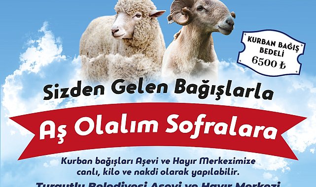 Turgutlu Belediyesi, ‘Sizden Gelen Bağışlarla Aş Olalım Sofralara’ projesiyle, Kurban Bayramı’nda ihtiyaç sahibi ailelere Aşevi ve Hayır Merkezi aracılığıyla bağışlanan kurbanlıkları ulaştıracak.‘Sizden Gelen Bağışlarla Aş Olalım Sofralara’ sloganıyla başlatılan bağış kampanyasında, dayanışmacı vatandaşların bağışladıkları kurbanlıklar, ihtiyaç sahibi ailelere Turgutlu Belediyesi Aşevi ve Hayır Merkezi aracılığı ile ulaştırılacak.Projeye ilişkin açıklama yapan Turgutlu Belediye Başkan Yardımcısı Fırat Honaz, şunları söyledi:“Her yıl olduğu gibi bu yıl da ihtiyaç sahibi ailelerimizin sofrasını bereketlendirmek adına ‘Sizden Gelen Bağışlarla Aş Olalım Sofralara’ kampanyasını başlattık. Bu bayramda da paylaşmanın, dayanışmanın, yardımlaşmanın manevi hissini en güzel şekilde hissedeceğiz. Turgutlu Belediyesi olarak kentimizde yaşayan ihtiyaç sahibi hemşehrilerimizin yanında olmaya devam edeceğiz. Kurban bağışında bulunmak isteyen vatandaşlarımızı tercihlerine göre canlı, kilo ve nakdi olarak Aşevi ve Hayır Merkezi'mize bağış yapmaya, ihtiyaç sahibi ailelerimizin yüzünü güldürmeye davet ediyorum. Bağış yapacak olan hayırseverlerimize teşekkürlerimi sunuyor, tüm hemşehrilerime şimdiden hayırlı bayramlar diliyorum.”Bu yıl kurban bağış bedeli 6 bin 500 TL olarak belirlendi. Bağışlar, Aşevi ve Hayır Merkezi’nin TR92 0001 2009 5660 0007 0000 88 numaralı hesabından yapılabilecek. Kurban bağışı hakkında 0236 312 22 28 veya 0236 313 10 78 numaralı telefonlardan ayrıntılı bilgi alınabilecek.