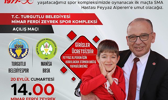 (MANİSA) - Turgutlu Belediyesi tarafından yapımı tamamlanan Mimar Ferdi Zeyrek Spor Kompleksi’nin açılış maçı, 20 Eylül Cumartesi günü saat 14.00’te oynanacak. Turgutlu Belediyesi Kadın Voleybol Takımı, açılış maçında Manisa Büyükşehir Belediyespor Kulübü’nü konuk edecek.Turgutlu Belediyesi'nin kendi imkan ve kaynaklarıyla kente kazandırdığı, merhum Manisa Büyükşehir Belediye Başkanı Ferdi Zeyrek’in isminin yaşatılacağı Mimar Ferdi Zeyrek Spor Kompleksi’nde ilk maç heyecanı yaşanacak.CHP Genel Başkanı Özgür Özel ve Manisa Büyükşehir Belediye Başkanı Besim Dutlulu’nun katılımıyla 19 Eylül Cuma günü açılışı yapılacak spor kompleksinde ilk maç, 20 Eylül Cumartesi günü saat 14.00’te oynanacak.Turgutlu Belediyesi Kadın Voleybol Takımı’nın ev sahipliği yapacağı açılış maçına, TVF Kadınlar 1. Ligi’nde mücadele eden Manisa Büyükşehir Belediyespor Kulübü konuk olacak.Açılış maçı, Feyyaz Alperen’e umut olacakAçılış maçında aynı zamanda SMA Tip2 kas hastalığıyla mücadele eden Feyyaz Alperen’e de umut olunacak. Spor kompleksinde kurulacak standa, maçı izlemeye gelecek sporseverler, Alperen’in sağlığına kavuşması için bağış yapabilecek.“Hemşehrilerimizi açılış maçımıza davet ediyoruz”Belediye Başkanı Çetin Akın, “Spor kompleksimizde Manisa sevdalısı, çocuklar ve gençler için büyük hayalleri olan Büyükşehir Belediye Başkanı'mız merhum Ferdi Zeyrek’in ismini ve hatırasını yaşatacağız. Turgutlu’muza kazandırmaktan gurur duyduğumuz, ‘Turgutlu Belediyesi Mimar Ferdi Zeyrek Spor Kompleksi’nin açılış maçını 20 Eylül Cumartesi günü gerçekleştireceğiz. Açılış maçında aynı zamanda Turgutlu’muzun evladı Feyyaz Alperen’in sağlığına kavuşması için yürütülen kampanyaya da hep birlikte destek olacağız. Tüm hemşehrilerimizi Belediyemiz Kadın Voleybol Takımı ve Manisa Büyükşehir Belediyespor Kulübü arasında dostluk ruhuyla oynanacak açılış maçımıza davet ediyoruz” dedi.