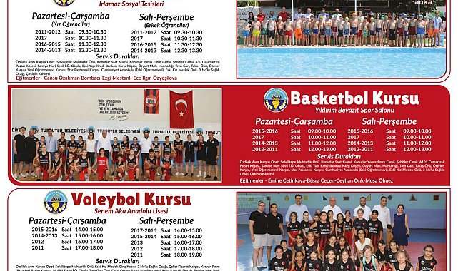 (MANİSA) - Turgutlu Belediyesi Kültür ve Sosyal İşler Müdürlüğü bünyesinde açılacak Yaz Spor Okulları ve Kültür Kursları, 1 Temmuz Pazartesi günü başlayacak. Kurslara kayıtlar ise devam ediyor.“Sporla büyüyen gençlik” projesi kapsamında çocukları ve gençleri sporun farklı branşlarında buluşturan Turgutlu Belediyesi, Yaz Spor Okulları’nı açmaya hazırlanıyor. Öğrenciler, Yaz Spor Okulları kapsamındaki yüzme, basketbol ve voleybol kurslarında alanlarında uzman antrenörler tarafından eğitim alarak yaz dönemini sporla iç içe geçirecek. Kültür Kursları'nda ise ilçeli çocuklar ve gençler sanat dallarında eğlenerek öğrenmenin keyfini yaşayacak. Kültür ve Sosyal İşler Müdürlüğü bünyesindeki Yaz Spor Okulları ve Kültür Kursları, 1 Temmuz Pazartesi günü başlayacak. Kurslara kayıtlar ise 09.00-12.30 ile 13.30-17.00 saatleri arasında Turgutlu Belediyesi Hizmet Binası zemin katında ve 7. katta yer alan Kültür ve Sosyal İşler Müdürlüğü’nde yapılacak. Kurslar hakkında detaylı bilgiye Kültür ve Sosyal İşler Müdürlüğü’nün 0236 313 21 22 numaralı telefonundan ulaşılabilecek. Başkan Çetin Akın, “Çocuklarımızın ve gençlerimizin yaz tatili boyunca hem eğlenmeleri hem de sosyal ve fiziksel becerilerini geliştirebilmeleri adına Yaz Spor Okulları ve Kültür Kurslarımızı düzenliyoruz. Çocuklarımızı ve gençlerimizi kurslarımıza katılmaya, spor ve kültür dolu bir yaz geçirmeye davet ediyorum” dedi.