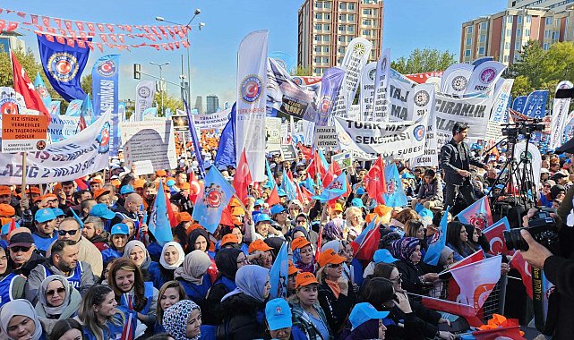(ANKARA) - Türkiye İşçi Sendikası Konfederasyonu (Türk-İş) tarafından Ankara'da düzenlenen “Zordayız, geçinemiyoruz” mitingi başladı. Türk-İş’e bağlı sendikalar ve Türkiye’nin dört bir yanından gelen binlerce işçi, vergide adalet ve yaşam şartlarının iyileştirilmesi için seslerini duyurmak üzere bir araya geldi.Türkiye İşçi Sendikası Konfederasyonu (Türk-İş) tarafından Ankara'da düzenlenen “Zordayız, geçinemiyoruz” mitingi Anadolu (Tandoğan) Meydanı'nda başladı. Mitingde işçiler, “Ağır vergi yükü kaldırılsın”, “Bozulan ekonominin bedelini biz ödemeyeceğiz”, “Kamu işçisi çözüm istiyor”, “İşçiler yine vergi şampiyonu”, “Kadro hakkımız engellenemez”, “Brütten net’e çakılıyoruz”, “Verilen sözler tutulmalı” dövizleri tuttu. İşçiler, “Direne direne kazanacağız”, “Vergide adalet istiyoruz” sloganları attı.Mitingte programın sunuculuğunu üstlenen Türk-İş İstanbul Temsilcisi Halil Baki Erdal, “Bizi görmeyenlere, bizi duymayanlara karşı ‘biz buradayız’ demek için geldik. Ülkenin dört bir yanında hak arayan işçi sınıfı için buradayız. Biz kimseden sadaka istemiyoruz, hakkımızı istiyoruz. Türkiye’de çalışma saatinin ortalaması 65 saat dünyada 45 saat. Yazıklar olsun. Verdiğiniz maaş yetmiyor, yetmiyor” diye konuştu.Son günlerde artan kadın cinayetlerine de tepki gösteren Erdal, “Kadın cinayetlerine ‘yeter artık’ diyoruz. Lafa geldiğimde kadına el kalkmaz deniliyor ama kadın cinayeti bitmiyor. Çocuk cinayetlerine dur diyoruz.” dedi.