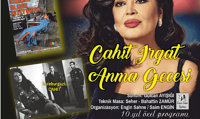 Usta oyuncu Türkay Şoray, Lüleburgaz Belediyesi ve Engin Sahne/Saim Engin'in 14 Aralık'ta düzenleyeceği şair Cahit Irgat'ı Anma Gecesi'ne katılacak.Oyuncu Türkay Şoray, Lüleburgaz Belediyesi ve Engin Sahne/Saim Engin'in 14 Aralık'ta düzenleyeceği Cahit Irgat'ı Anma Gecesi'ne katılacak. Lüleburgazlı tiyatro ve sinema sanatçısı, şair Cahit Irgat’ın anılacağı bu özel program, 14 Aralık 2023 Perşembe günü saat 19:30’da Lüleburgaz Yıldızları Sanat Akademisi Cahit Irgat Salonu’nda yapılacak. Programın sunuculuğunu Gülcan Ayışığı yapacak.