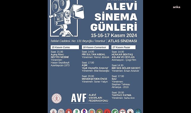 (İSTANBUL) - Alevi Vakıflar Federasyonu öncülüğünde Türkiye’de ilk kez gerçekleştirilecek Alevi Sinema Günleri, 15-17 Kasım günleri arasında Beyoğlu'nda bulunan Atlas Sineması’nda izleyiciyle buluşacak. Federasyon Başkanı Genel Başkanı Dr. Haydar Baki Doğan, “Alevi Sinema Günleri, Alevi Bektaşi mirasını sinemanın gücüyle daha geniş kitlelere tanıtmayı amaçlayan bir adım. Bu tür etkinlikler, toplumsal farkındalık yaratmanın önemli bir yoludur” dedi.Alevi Vakıflar Federasyonu'nun düzenlediği Alevi Sinema Günleri, 15-17 Kasım günleri arasında Atlas Sineması'nda izleyiciyle buluşmaya hazırlanıyor.Etkinlik, 15 Kasım Cuma günü saat 21.00'de 1973 yılı Azerbaycan yapımı "Seyyid Nesimi" filmi ile açılış yapılacak. Bu film, Türkiye’de ilk kez izleyiciyle buluşacak. Yayınlandığı dönemde izlenme rekorları kıran Seyyid Nesimi'nin filmi, Türkiye’de vizyona girmemişti. Filmin 51 yıl sonra Atlas Sineması’nda gösterimi gerçekleştirilecek.16 Kasım Cumartesi günü, saat 14.00 seansında, Türkiye'de çekilen ilk uzun metraj Alevi Bektaşi filmi olan "Pir Sultan Abdal" gösterilecek. Yönetmenliğini Remzi Jöntürk’ün yaptığı bu filde, Fikret Hakan, Tuncer Necmioğlu ve Mine Sun gibi önemli isimler yer alıyor. Film, 51 yıl aradan sonra sinema salonlarında yeniden izleyicilerle buluşacak.Aynı gün saat 17.00'de "Aşık" filmi gösterilecek. Bilal Babaoğlu’nun yönettiği bu filmde, Emirhan Kartal, Meltem Miraloğlu, Yeliz Şatıroğlu ve Uğur Aslan gibi isimler yer alıyor. Saat 20.00'de ise "Menekşe'den Önce" belgeseli gösterilecek. Soner Yalçın’ın yönettiği bu film, 2 Temmuz 1993 tarihinde Sivas Madımak’ta katledilen Menekşe’nin hikâyesine odaklanıyor ve bir bellek olma özelliği taşıyor.Çocuklara özel gösterimler17 Kasım Pazar günü, saat 14.00'de "Hünkâr Bektaş, Aslan ve Ceylan" adlı çizgi-animasyon filmi gösterilecek. Alevi Bektaşi Enstitüsü’nün yapımcılığını üstlendiği bu film, ilk Alevi Bektaşi çizgi animasyon filmi olma özelliği taşıyor.Aynı gün saat 14.30'da, Ahmet Ümit’in aynı adlı romanından uyarlanan "Bir Ses Böler Geceyi" filmi gösterilecek. Ersan Arsever’in yönettiği bu filmde Cem Davran, Merve Dizdar, Ali Sürmeli ve Gün Koper gibi önemli oyuncular yer alıyor. Saat 17.00'de ise "Saz" filmi gösterilecek. Stephan Talneau’nun yönettiği bu film, Berlin'den Horasan'a, oradan Anadolu'ya uzanan bir serüveni anlatıyor ve Alevi Bektaşi deyişlerinin izini sürüyor.Etkinliklerin son gösterimi ise saat 20.00'de "Tahtacı Fatma" filmi ile yapılacak. 1979 yapımı bu belgeselin yönetmeni ise Suha Arın. 1979 Uluslararası Çocuk Yılı vesilesiyle gerçekleştirilen bu belgesel, Toroslar’da yaşayan 12 yaşındaki bir tahtacı kızının zorlu yaşamını, özlemlerini ve bilinçaltındaki korkularını yansıtıyor.Etkinliği düzenleyen Alevi Vakıfları Federasyonu (AVF) Genel Başkanı Dr. Haydar Baki Doğan, "Alevi Sinema Günleri, Alevi Bektaşi mirasını sinemanın gücüyle daha geniş kitlelere tanıtmayı amaçlayan bir adım. Bu tür etkinlikler, toplumsal farkındalık yaratmanın önemli bir yoludur" dedi.