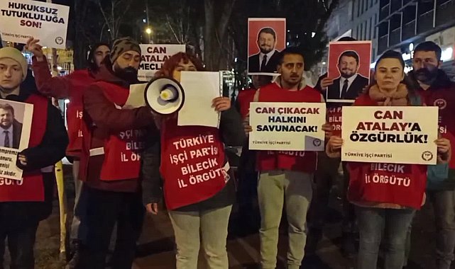 Türkiye İşçi Partisi (TİP) Hatay Milletvekili Can Atalay'ın milletvekilliğinin hakkındaki Yargıtay kararı okutularak TBMM'de düşürülmesi dün akşam saatlerinde Bilecik’te protesto edildi. TİP Bilecik İl örgütü yöneticisi Hande Güngör, "Can Atalay er ya da geç esir tutulduğu o dört duvar arasından çıkacak. Hatay halkı vekiline kavuşacak" dedi.