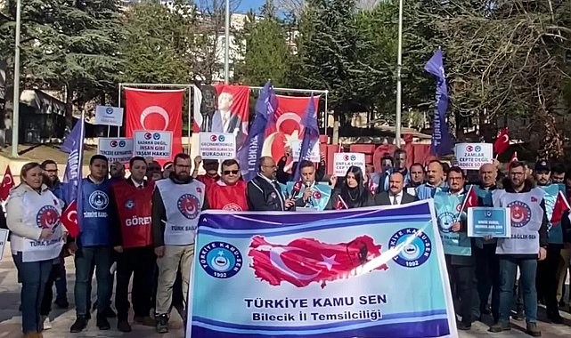 (ANKARA) - Türkiye Kamu-Sen üyeleri, yurt genelinde eş zamanlı olarak memur ve emekli maaş zamlarını protesto etti. Türkiye Kamu Sen Bilecik İl Başkanı Ali Osman Enli, "Alırken şahin olanlar, verirken güvercin oldu. Alırken bol kepçe kullananlar, verirken kaşığı bile çok gördü. Alırken bonkör, verirken cimri oldular. Bütün harcamalar yüzde 40'ların üzerinde artmışken maaşlara kümülatif yüzde 11,3 zam yapmayı yeterli gördüler" dedi.