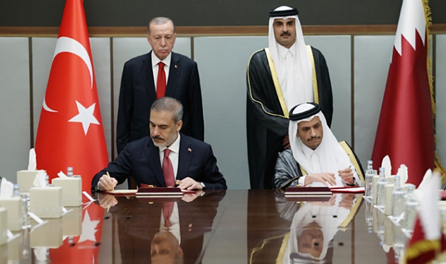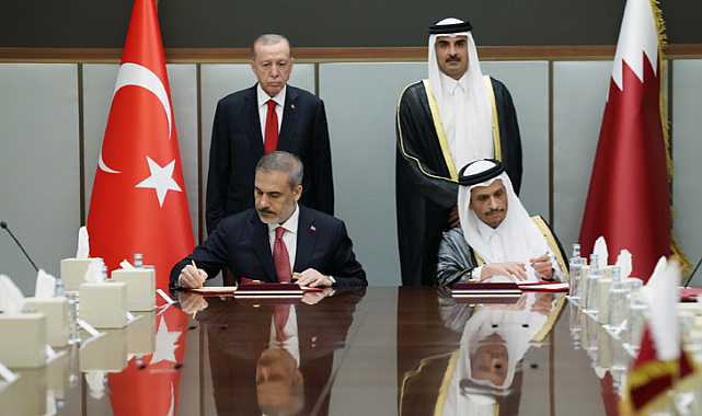 Türkiye ve Katar, iki ülke arasında diplomatik ilişkilerin 50’nci yıl dönümü dolayısıyla ortak bir bildiri yayınladı. Bildiride, “İki ülke arasındaki ekonomik ve ticari alanlardaki iş birliği, ticaret ve yatırım hacmi açısından geçtiğimiz birkaç yıl içinde istikrarlı bir büyümeye tanık oldu. İki kardeş ülke ve halkımızın çıkarlarına hizmet edecek ekonomik ve ticari ilişkileri ilerletmeyi içtenlikle arzuluyoruz” denildi.Cumhurbaşkanı Recep Tayyip Erdoğan’ın Körfez ülkelerine ziyaretler kapsamında bugün, Dışişleri Bakanı Hakan Fidan ile Katar Devleti Başbakanı ve Dışişleri Bakanı Şeyh Muhammed bin Abdulrahman bin Jassim Al-Thani arasında, Türkiye ile Katar arasında diplomatik ilişkilerin kurulmasının 50’nci yıl dönümü dolayısıyla ortak bildiri imzalandı. Bildiride şunlar kaydedildi:“2023 yılında Türkiye Cumhuriyeti ile Katar devleti arasında diplomatik ilişkilerin kurulmasının 50. yıl dönümünü kutlamaktan mutluluk duyuyoruz. Türkiye-Katar ilişkileri, kurulduğu 1973 yılından itibaren stratejik ortaklık aşamasına gelene kadar niteliksel bir dönüşüm geçirmiştir. İki kardeş ülke arasındaki mevcut iş birliği, Türkiye Cumhurbaşkanı Recep Tayyip Erdoğan ve Katar Emiri Altesleri Şeyh Tamim bin Hamad Al-Thani’nin bilge liderliklerinde her geçen gün güçlenmeye devam etmektedir.Türkiye-Katar ilişkileri, iki ülkenin kardeşlik ve dayanışma ruhu içinde, tarihlerinin birçok önemli dönemecinde birbirlerine tereddütsüz destek sağlamaları ve iki ülkenin çeşitli alanlarda karşılıklı desteğini sürdürmesi nedeniyle siyasi ve sosyal temeller üzerine inşa edilmiş köklü tarihi bağları yansıtmaktadır. Bunlardan sonuncusu, Türkiye Cumhuriyeti’nin Şubat 2023’te yaşadığı deprem felaketinde sağlanan destekte görülmüştür.Bu dayanışma, Katar devletinin depremin ilk anından itibaren yardımları ulaştırmak için askeri uçaklarla oluşturduğu hava koridoru aracılığıyla sağladığı ve binlerce Türk'ün acısını dindirmeye katkı sağlayan eşsiz insani yardımda da kendini göstermiştir.“2015’TEN BU YANA YAKLAŞIK 100 BELGE İMZALANMIŞTIR”Türkiye Cumhuriyeti ile Katar devleti arasındaki mevcut stratejik ortaklık bütün düzeylerde verimli olup, çoğu bölgesel ve uluslararası konularda iki ülke benzer yaklaşım sergilemektedir. İkili bağlamda, Yüksek Stratejik Komite mekanizması, üyeleri 2015’ten bu yana her yıl bir araya gelen iki kardeş ülke arasındaki ortaklığın en somut göstergelerinden biridir. Bu stratejik komite aracılığıyla çeşitli sektörlerde ve alanlarda ikili iş birliği düzeyini geliştirmeyi amaçlayan yaklaşık 100 belge imzalanmıştır.İki ülke arasındaki ekonomik ve ticari alanlardaki iş birliği, ticaret ve yatırım hacmi açısından geçtiğimiz birkaç yıl içinde istikrarlı bir büyümeye tanık oldu. İki kardeş ülke ve halkımızın çıkarlarına hizmet edecek ekonomik ve ticari ilişkileri ilerletmeyi içtenlikle arzuluyoruz.“ORTAK ÇABALARIMIZI SÜRDÜRME KARARLILIĞINDAYIZ”Bunun yanı sıra, gücünü tarihin derinliklerinden alan köklü kültürel, sosyal ve dini bağlar, iki ülke halklarını da bir araya getirmektedir. Katar devleti tarafından benzeri görülmemiş bir başarıyla düzenlenen FIFA Dünya Kupası Katar 2022 ile ilgili olarak Türkiye Cumhuriyeti, güvenlik desteği sağlamanın yanı sıra başta müteahhitlik ve otelcilik olmak üzere çeşitli alanlardaki şirketleri ve uzmanları aracılığıyla turnuvanın başarısına değerli katkılar sağlamıştır.Siyasi, diplomatik, ekonomik ve ticari alanlardaki stratejik ilişkilerimiz ve ikili iş birliğimiz temelinde ve iki ülkenin bilge liderlerinin direktifleri doğrultusunda, iki kardeş ülke ve halkların yararına ikili ilişkilerin güçlendirilmesinin sürekliliğini sağlamak için çeşitli alanlarda koordinasyon sağlamak üzere ortak çabalarımızı sürdürme kararlılığındayız.”