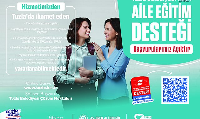 (İSTANBUL) - Tuzla Belediyesi’nin üniversiteli öğrencilerin ailelerine maddi destek sağlamak amacıyla hayata geçirdiği “Aile Eğitim Desteği” başvuruları başladı. 02–31 Ekim günleri arasında yapılacak başvurularla, Tuzla’da ikamet eden üniversite öğrencilerinin aileleri eğitim desteğinden faydalanabilecek.“Eğitime Destek, Geleceğe Yatırım” sloganıyla yürütülen proje, öğrencilerin ve ailelerinin bütçelerine katkı sağlamayı, gençlerin eğitim yolculuklarına umutla devam etmelerini desteklemeyi hedefliyor.Tuzla Belediye Başkanı Eren Ali Bingöl, projeyle ilgili yaptığı açıklamada, "Eğitim, bir ülkenin geleceğe bırakacağı en kıymetli mirastır. Biz de Tuzla’da eğitimi destekleyen her adımı geleceğe yatırım olarak görüyoruz. Üniversiteli gençlerimizin ailelerinin yanında olarak onların yükünü hafifletiyoruz" dedi.Başvurular, 'www.tuzla.bel.tr' adresinden online olarak ya da Tuzla Belediyesi Çözüm Noktaları'na şahsen yapılabiliyor.Türkiye Cumhuriyeti vatandaşı olan, Tuzla’da ikamet eden, normal öğrenim süresi içinde ön lisans veya lisans eğitimine devam eden, başarı notu en az 100 üzerinden 53 veya 4.00 üzerinden 2.00 olan, devlet üniversitesinde ya da vakıf/özel üniversitede yüzde 100 burslu okuyan öğrencilerin aileleri, sosyal yardım kriterlerine uygun olanlar destekten yararlanabiliyor.2024-2025 öğretim yılında aile eğitim desteğinden yararlananların, 2025-2026 öğretim yılında tekrar başvuru yapmaları gerekiyor. Ödemeler, hak kazanan ailelere, 4 eşit taksitte yapılacak.