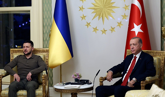 Cumhurbaşkanı Recep Tayyip Erdoğan, Türkiye’ye çalışma ziyaretinde bulunan Ukrayna Devlet Başkanı Volodimir Zelenski ile İstanbul Vahdettin Köşkü’nde bir araya geldi. İki liderin baş başa görüşmesi saat 21.00 civarında başladı.Ukrayna Devlet Başkanı Volodimir Zelenski bugün İstanbul’a geldi. Cumhurbaşkanı Recep Tayyip Erdoğan, çalışma ziyareti için Türkiye’ye gelen Ukrayna Devlet Başkanı Volodimir Zelenski ile bir araya geldi. Erdoğan Zelenski'yi Vahdettin Köşkü'nde törenle karşıladı. İki liderin görüşmesi saat 21.00 civarında başladı.Cumhurbaşkanlığı'nın sosyal medya paylaşımında görüşmeden tek kare fotoğrafa yer verilerek, “Cumhurbaşkanımız Recep Tayyip Erdoğan, Ukrayna Devlet Başkanı Volodimir Zelenskiy ile Vahdettin Köşkü’nde görüştü” denildi.Erdoğan ile Zelenski ikili görüşmenin ardından heyetler arası görüşmeye başkanlık edecek. İki liderin ardından ortak basın toplantısı düzenlemesi bekleniyor.