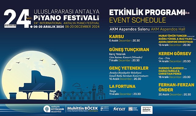 (ANTALYA) - Antalya Büyükşehir Belediyesi tarafından bu yıl 24’üncüsü düzenlenen Uluslararası Antalya Piyano Festivali, 6-20 Aralık arasında AKM’de gerçekleştirilecek. Festival bu yıl klasik müzik, caz ve flamenkoda Türkiye ve dünyadan birçok yıldızı müzikseverlerle buluşturacak.Avrupa Festivaller Birliği (EFA) üyesi Uluslararası Antalya Piyano Festivali bu yıl 6-20 Aralık 2024 tarihleri arasında yapılacak. Antalya Büyükşehir Belediyesi’nin ev sahipliğinde 24’üncüsü gerçekleşecek olan festival, Türkiye ve dünyadan birçok sanatçıyı müzikseverlerle buluşturmaya hazırlanıyor. Karsu konseri ile 6 Aralık'ta başlayacak festival kapsamında, La Fortuna Tango, Agora Senfoni Orkestrası, Kerem Görsev Trio, Duendo Famenco Feat Maria Farelo & Christian Perez ve Ferhan- Ferzan Önder gibi dünyaca ünlü sanatçılar sahne alacak. Piyano Festivali’nin şehir etkinlikleri kapsamında miradorda gün batımı konseri gerçekleştirilecek.Büyükşehir Belediye Başkanı Muhittin Böcek, kentin kültür ve sanatın da başkenti olması yolunda önemli etkinlikleri hayata geçirdiklerini belirterek, Uluslararası Piyano Festivali’nin bu anlamda büyük bir güç olduğunu söyledi. Festivallerin toplumu sanatla birleştiren en önemli etkinlikler olduğunu belirten Başkan Böcek, “Antalya’mız kültür ve sanat şehri, Antalya’mız festivaller şehri. En önemli sosyal etkinliklerden olan festivaller, mutlaka siyaset üstü tutulmalı. Uluslararası Piyano Festivalimiz, her geçen yıl çıtayı bir öncekinden daha yükseğe çıkararak büyüyor. Bu yıl da tüm dünyanın gözü bu önemli sanat etkinliğimizde olacak. Tüm vatandaşlarımızı bu büyük sanatsal buluşmayı kaçırmamaya davet ediyorum” diye konuştu.Açılışı Karsu yapacakFestivalin açılış konseri, 6 Aralık Cuma günü Karsu ile gerçekleşecek. Concertgebouw’dan North Sea Jazz Festival’a ve hatta New York Carnegie Hall’a kadar önemli sahnelerde yer alan Karsu, Antalya’da dinleyicileri ile buluşacak.Tango OrkestrasıPiyano Festivali’nde 11 Aralık Çarşamba günü Dünya Tango Günü’nde dünyadaki sayılı tango orkestralarından biri olan La Fortuna Tango Orkestrası konser verecek. Dünya Tango Günü’nü özel dans workshopları da yapılacak. Piyano Festivali’ne özel olarak düzenlenen bu etkinlikte, profesyonel eğitmenler eşliğinde tango dans figürleri öğretilecek.Sosyal sorumluluk projesiFestivalde sanatın iyileştirici gücü sosyal sorumluluk projesiyle birleştiriliyor. 13 Aralık Cuma günü sokak hayvanları için Agora Senfoni Orkestrası konseri düzenlenecek. Konserde Fransız besteci Camille Saint-Saens’ın bestelediği “Hayvanlar Karnavalı” eseri seslendirilecek. Sokak hayvanları için farkındalık yaratacak etkinlikten elde edilecek gelir, yine sokak hayvanları için kullanılacak.Kerem Görsev sahne alacakKerem Görsev, 14 Aralık cumartesi günü sahne alacak. 1995'ten bugüne kadar 22 albümde, trio için düzenlediği bestelerinden, filarmoni orkestrası aranjmanlarına kadar akustik caz müziğinin farklı formatlarını sergileyen sanatçı, Antalyalılara müzik ziyafeti çekecek. Flamenko rüzgarı18 Aralık çarşamba günü, Duende Flamenco Feat grubu İspanya’dan gelen dünyaca ünlü iki dansçı María Farelo ve Christian Perez ile gösteri sunacak. Duende Flamenco; flamenko türünün geleneksel örneklerinin yanı sıra, modern ve popüler tarzlarda da parçalar seslendiriyor. Türkiye'de flamenko dans alanında ilk akla gelen isimlerden olan Rasime Öktem de konserlerde Duende Flamenco ile sahne alacak ve gösteri içerisinde seyirciye sürpriz anlar yaşatacak.Kapanışı Ferhan Ferzan Önder kardeşler yapacak20 Aralık Cuma günü festivalin kapanış konserinde Ferhan-Ferzan Önder kardeşler sahneye çıkacak. Henüz on yaşındayken piyano çalmaya başlayan kardeşlerin uluslararası alanda birçok ödülü bulunuyor. İkili, dünya çapında konser turları ve dünyaca ünlü orkestralar ile düzenli performanslarıyla tanınıyor.Sahne genç yeteneklerinÖte yandan, Antalya Piyano Festivali genç yeteneklere de ev sahipliği yapmaya devam ediyor.Bu kapsamda Genç Yetenek Güneş Tunçkıran, 7 Aralık Cumartesi saat 20.30’da Karaalioğlu Parkı miradorda gün batımı konseri verecek. 10 Aralık Salı günü saat 20.30’da AKM Perge Salonu’nda Antalya Büyükşehir Belediyesi İsmail Baha Sürelsan Konservatuvarı Piyano Bölümü öğrencileri de hünerlerini sergileyecek.