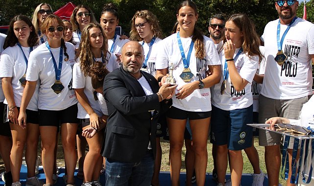 (İZMİR) - İzmir Büyükşehir Belediyesi Spor Kulübü’nün ev sahipliğinde gerçekleşen Uluslararası Kadınlar Sutopu Turnuvası tamamlandı. İzmir Büyükşehir Belediyesi Spor Kulübü, yenilgisiz şampiyonluğa ulaştı. Kübra Kuş ise Gol Kraliçesi oldu.İzmir’in ev sahipliğinde gerçekleşen Uluslararası Kadınlar Sutopu Turnuvası’nın şampiyonu İzmir Büyükşehir Belediyesi Spor Kulübü oldu. İzmir Göztepe Rotary iş birliği ile düzenlenen turnuvanın son gününde Chania İzmir Büyükşehir Belediyesi Spor Kulübü B Takımı’nı 15-8 yendi. Günün son karşılaşmasında ise İzmir Büyükşehir Belediyesi Spor Kulübü, Yunan ekip Pekev'i 17-7 mağlup ederek yenilgisiz şampiyon oldu. İzmir BBSK’lı Kübra Kuş, turnuvanın Gol Kraliçesi seçildi. Yunanistan'dan Chania turnuvayı ikinci tamamlarken, İzmir BBSK B takımı üçüncü, Yunanistan'dan Olimpiyakos dördüncü ve Pekev Chios ise beşinci oldu.Şampiyonanın kapanış töreninde ise kupa ve madalyalar sahiplerini buldu. İzmir Büyükşehir Belediyesi Spor Kulübü As Başkanları Tuğçe Gülcüler ve Mustafa Lağap, İzmir Büyükşehir Belediyesi Spor Kulübü Yönetim kurulu Üyesi Barış Lale, Göztepe Rotary Kulübü eski Başkanı Hülya Karaduman, İzmir Büyükşehir Belediyesi Spor Kulübü Genel Sekreteri Barış Şeref ve Yunanistan Türkiye Uluslararası Komite Geçmiş Dönem Başkanı Murat Balcı, hakem, takım ve sporculara kupa ile anı madalyaları takdim etti.