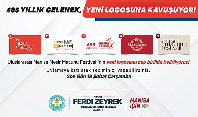 (MANİSA)- Manisa Büyükşehir Belediyesi, Uluslararası Mesir Macunu Festivali’nin 485'inci yılı için tasarlanan yeni logolardan hangisinin kullanılacağını, halkın oylarıyla belirleyecek. Manisa Büyükşehir Belediyesi, katılımcı yönetim anlayışıyla çalışmalarını sürdürüyor. Bu kapsamda Uluslararası Manisa Mesir Macunu Festivali’nin 485'inci yılı için tasarlanan yeni logolardan hangisinin kullanılacağı halkın oylarıyla belirlenecek.Manisa Büyükşehir Belediyesi’nin resmi internet sitesinde 14 Şubat Cuma günü başlayacak ve 19 Şubat Çarşamba günü son bulacak ankette, vatandaşlara beş farklı logo seçeneği sunulacak. Manisalılar, beğendikleri logoyu seçerek oy kullanıp UNESCO İnsanlığın Somut Olmayan Kültürel Mirasının Temsili Listesi’nde de yer alan 485. Uluslararası Manisa Mesir Macunu Festivali’nin yeni logosunu belirleyecek."Beş farklı logoyu Manisalıların beğenisine sunarak birlikte karar vereceğiz" Büyükşehir Belediye Başkanı Ferdi Zeyrek, katılımcı yönetim anlayışının önemini vurgulayarak, "Manisa’yı ortak akılla yönetiyoruz. Bildiğiniz gibi Kırmızı Yol için de halkımıza sormuş, ankete katılanların yüzde 86’sının kararıyla bu uygulamayı kaldırmıştık. Şehrimizin en önemli kültürel değerlerinden olan 485. Uluslararası Manisa Mesir Macunu Festivali için tasarladığımız beş farklı logoyu da Manisalıların beğenisine sunarak birlikte karar vereceğiz" dedi.