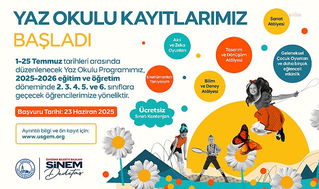 (İSTANBUL) - Üsküdar Belediyesi’nin çocuklara öğretici ve eğlenceli bir yaz tatili sunmak için hazırladığı 2025 Yaz Okulu'na kayıtlar bugün itibarıyla başladı.