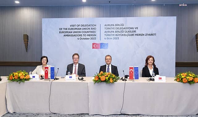 Programa, Mersin Büyükşehir Belediye Başkanı Vahap Seçer ve eşi Meral Seçer, AB Türkiye Delegasyon Başkanı Büyükelçi Nikolaus Meyer-Landrut ve eşi Brigitte Meyer-Landrut, Hırvatistan Büyükelçisi Hrvoje Cvitanovic, Fransa Büyükelçisi Isabelle Dumont, Macaristan Ticaret Ateşesi Roland Vegh, İtalya Ekonomi Danışmanı Maria De Stefani Spadafora, İrlanda Büyükelçisi John Mccullagh, Letonya Büyükelçisi Pēteris Vaıvars, Litvanya Büyükelçisi Ricardas Degutis, Lüksemburg Maslahatgüzarı Laura Lakaff, Malta Büyükelçisi Theresa Cutajar, Hollanda Maslahatgüzarı Nathalie Lintvelt, Polonya Büyükelçisi Maciej Lang, Portekiz Büyükelçisi Virginia Pina, Romanya Büyükelçisi Stefan Alexandru Tinca, Slovakya Büyükelçisi Jan Psenica, İsveç Büyükelçisi Malena Mard, AB, bürokratları, Mersin Ticaret ve Sanayi Odası Başkanı Hakan Sefa Çakır, Mersin Deniz Ticaret Odası Başkanı Cihat Lokmanoğlu, Mersin Ticaret Borsası Başkanı Abdullah Özdemir, Mersin Büyükşehir Belediyesi Meclis Üyeleri ve bürokratları katıldı.Açılış kokteyli ile başlayan program, Mersin ve Mersin Büyükşehir Belediyesi’nin tanıtım videosunun gösterimi ile devam etti.“MERSİN’İN YENİ YATIRIMLARA İHTİYACI VAR”Programda konuşan Başkan Vahap Seçer, Mersin’in huzur ve kardeşlik kenti olduğuna vurgu yaparak Mersin’de belediye başkanı olmaktan duyduğu mutluluğunu dile getirdi. Mersin’in iç ve dış göçlerin yanı sıra 6 Şubat’ta yaşanan deprem dolayısıyla da büyük bir göç aldığına dikkat çeken Seçer, göçlerin kente getirdiği ilave yüklerden söz etti. Göç dolayısıyla başta altyapı olmak üzere konut, sağlık ve eğitim gibi konularda yeni yatırımlara ihtiyaç duyulduğunun altını çizen Seçer, “Bu konuda merkezi hükümetin mutlaka yatırım projeksiyonları var ama yerel yönetimlerin de bu işlerin içerisine dahil olması gerekiyor. Bu konuda da özellikle AB’ye üye ülkelerdeki bazı modelleri, oradaki finans kaynaklarını zorlayarak iş birliği halinde bunu önümüzdeki süreçte hayata geçirmek için arkadaşlarımızla beraber çalışmalar yürütmekteyiz” dedi.“ALTYAPI YATIRIMLARI YÜKSEK MALİYET GEREKTİRİYOR”İhtiyaç duyulan altyapı yatırımlarının yüksek maliyete sahip olduğunu söyleyen Seçer, “Altyapı yatırımları yüksek maliyetli yatırımlar ve belediyelerin kendi bütçeleriyle bunu karşılama gücü yok. Ya uygun şartlarda uzun geri ödemeli, uygun finans maliyetli krediye erişeceksiniz ya da hibe kredilerinden yararlanacaksınız. Bu konuda da bizim için en önemli kaynak; yurtdışı krediler, finans kaynakları ve bizimle iletişim halinde olan AB ve AB’ye bağlı kurumlardır. Örneğin FRIT-II kapsamında şu anda 39 Milyon Euro’luk onaylanmış kredimizin yatırıma dönüştürme noktasındayız” diye konuştu.Seçer, EBRD tarafından da Mersin’deki kanalizasyon ve atık su arıtma tesislerinde kullanılmak üzere 70 Milyon Euro’luk bir kredi paketinin Büyükşehir’e tahsis edilmesi yönünde çalışmaların sürdüğünü aktardı. “MERSİN’DE VATANDAŞLARIMIZIN TEMİZ BİR ÇEVREDE YAŞAMA HAKKINA SAYGI DUYACAK YATIRIMLARIN PEŞİNDEYİZ”Başkan Seçer, toplam 163 milyon Euro tutarında kredi arayışları olduğunu, bunun çalışmalarını da yaptıklarını belirterek şöyle devam etti:“Peki, bu kadar çok altyapı yatırımına Mersin neden ihtiyaç duyuyor? Sadece bu son dönemde aldığımız göçlerin bir neticesi mi? Hayır. Bunlar tabi ki çok önemli tesisler ama geçmiş yıllardan günümüze kadar belki bu yatırımların ihmal edilmiş olması, bugüne aktarılması, temiz çevrede yaşama bilincinin bugünkü kadar belki de yöneticilerde olmaması gibi çok sayıda faktör sayabiliriz. Biz Mersin’de vatandaşlarımızın anayasal hakkı olan temiz bir çevrede yaşama hakkına saygı duyacak yatırımların peşindeyiz. Özel sektörün de bölgemizde yaptığı yatırımlarda, özellikle Mersin’de çevre sorunları yaratacak, komplikasyonlar yaratacak yanlış yatırımların yapılmaması için de yasal çerçevede mücadele ettiğimizi söyleyebilirim.”“12 OLAN FİLO YAŞ ORTALAMAMIZI, ŞU ANDA 2 YAŞ MERTEBESİNE İNDİRDİK”Başkan Seçer konuşmasında, bazı kuruluşlarla yaptıkları iş birlikleri sonucu aldıkları katkılardan söz ederek, “Mersin toplu taşıma filosunu yeniledik. 272 otobüs alımı gerçekleştirdik. Türkiye'de son 4 yılda İstanbul, Ankara, İzmir gibi büyük metropoller de dâhil, bu sayının yarısına kadar ulaşan bir büyükşehir belediyesi yoktur. Tam 272 yeni otobüs filomuza katarak, 12 olan filo yaş ortalamamızı, şu anda 2 yaş mertebesine indirdik ve bu alımları tamamladık. Toplu taşımada bu otobüsler sefer yapıyor. Bu otobüslerin 205 tanesi çevre dostu. Bu 205 otobüsün de 87 adedini kendi öz kaynaklarımızla aldık, geri kalan kısmını da EBRD’nin Green City Projesi kapsamında bize sağladığı 7 milyonu hibe, 22 milyon, 10 yıl ödemeli kredi sayesinde aldık” diye konuştu.“SEBZE-MEYVE KURUTMA TESİSİ; KADIN İSTİHDAMINI ÖNCELEYEN BİR PROJE”Yaptıkları iş birlikleri ile birlikte aldıkları katkılardan söz etmeye devam eden Seçer, Uluslararası Göç Politikaları Merkezi ile yaptıkları iş birliği sonucu Mersin Büyükşehir Belediyesi, Mersinden Kadın Kooperatifi iş birliğine aktarılan 284 bin 600 Euro’luk güneş enerjisiyle çalışan sebze-meyve kurutma tesisinin kurumunu gerçekleştirdiklerini aktararak bu tesisinin özellikle kadın istihdamını önceleyen bir proje olduğunu vurguladı. Seçer, ayrıca Büyükşehir’in meslek edindirme kursları, hiyjen kiti desteği ve ihtiyaç sahiplerinin evlerinin onarımı için de Uluslararası Göç Örgütü’nden aldıkları katkıdan bahsetti. “SÜRATLE ALTYAPI ÇALIŞMALARINI TAMAMLAMAMIZ LAZIM”Mersin'in özellikle sığınmacı kay