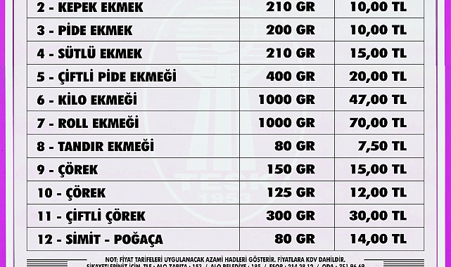 Van'da ekmek ve pide fiyatlarına zam geldi. Van Lokantacılar Fırıncılar Esnaf Odası'ndan yapılan açıklamada; "Ülke genelinde en uygun fiyata sattığımız ekmeğin girdilerindeki artış sonrası, üst kuruluşlarla yaptığımız toplantılar ve Bakanlığa gönderdiğimiz taleplerin 17 Aralık 2024 tarihinde kabul edilmesi neticesinde, ekmek fiyatlarını güncelleme zorunluluğu doğmuştur. Un, maya, sigorta ve diğer 20'ye yakın girdi kalemindeki zamlar nedeniyle, 210 gram somun ekmek ve 200 gram pide ekmeği, 20 Aralık 2024 Cuma günü itibarıyla Van ili ve ilçelerinde 10 TL'ye satılacaktır" denildi.