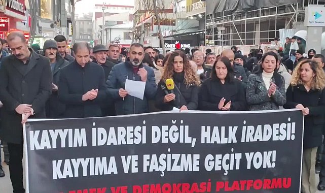 (VAN) - Van Emek ve Demokrasi Platformu, Siirt Belediyesi'ne kayyum atanmasını "Hukuksuzluğun parçası olan kayyımları kabul etmiyoruz, kayyumlara karşı mücadelemiz devam edecek" diyerek, protesto etti.Sanat Sokağı'nda bir araya gelen Van Emek ve Demokrasi Platformu, Siirt Belediyesi'ne kayyum atanmasını protesto etti. Protestoda, "Kayyım idaresi değil, halk iradesi", "Kayyıma ve faşizme geçit yok" yazılı döviz açılırken, "Kayyumlar gidecek, halk gelecek" sloganı atıldı.Platform adına konuşan KESK Dönem Sözcüsü Yunus Haylaz şunları söyledi:"Dün sabah bir kayyım ataması haberi ile uyandık. Siirt belediyesi Eşbaşkanı Sofya Alağaş’ın yerine bugün itibariyle kayyım atandı. Siirt'te 10 günlük etkinlik yasağı getiren Akp hükümetinin yaptıkları açıkça bir irade gazpıdır. İsminin kayyım olması bu antidemokratik uygulamaların irade gaspı niteliği taşıdığı gerçeğini değiştirmez. Bu sebeple Akp iktidarının uzun süredir ülkeyi irade gaspları yöntemleri ile yönettiğini açıkça ifade etmek gerekir.Türkiye’de son dönemde yürütülen çözüm süreci ile eş zamanlı olarak gerçekleştirilen kayyım atamaları, hükümetin samimiyeti konusunda ciddi soru işaretleri yaratmaktadır. Bir yandan çözüm sürecinden ve barış ihtiyacından bahsedilirken, diğer yandan seçilmiş belediye başkanlarının görevden alınarak yerlerine kayyım atanması, demokratik meşruiyet açısından büyük bir çelişki doğurmaktadır. Kayyım atamaları, doğrudan halkın iradesini hedef alan bir uygulamaya dönüşmüştür. 2016’dan bu yana 100’den fazla belediyeye kayyım atanmış ve milyonlarca seçmenin iradesi yok sayılmıştır. Bugün de Mardin, Dersim, Akdeniz, Siirt ve Esenyurt gibi belediyelere yapılan müdahaleler, seçimlerin anlamsız hale getirilmeye çalışıldığını göstermektedir. Bu durum, sadece Kürt seçmenlerin değil, Türkiye’de demokratik temsil ilkesine önem veren herkesin sorunu haline gelmiştir.'İktidarın güven vermeyen tutumu barış ihtimalini daha da zora sokmuştur'Öte yandan, çözüm sürecinin bir demokratikleşme projesi olup olmadığı konusunda da ciddi şüpheler vardır. Sürecin demokratikleşme ve barış amacından ziyade, siyasi manevralarla belirli kesimleri kontrol altına alma çabası olduğu görüşü, Kürt halkının büyük bir çoğunluğunda karşılık bulmaya başlamıştır. Çözüm sürecine dair oluşan temkinli iyimserlik, Bahçeli’nin 'yeni dönem başlıyor' açıklamasından hemen sonra yapılan kayyım atamalarıyla zedelenmiş, iktidarın güven vermeyen tutumu barış ihtimalini daha da zora sokmuştur.Türkiye’nin, geçmişte Oslo görüşmeleri ve 2013-2015 çözüm süreci deneyimlerinden ders çıkararak, şeffaf ve hukuki bir zeminde yürütülen bir barış süreci oluşturması gerekmektedir. Kayyım politikaları, çözüm sürecine duyulan güveni sarsmakta ve demokrasiye zarar vermektedir. Eğer gerçekten bir barış ve çözüm süreci yürütülecekse, öncelikle halkın seçme hakkına saygı duyulmalı ve demokratik süreçler korunmalıdır.Bütün insan hakları ve demokrasi kurumlarını bu antidemokratik yaklaşımına karşı ses çıkarmaya çağırıyoruz. İktidar bu hatadan bir an önce dönmeli ve halk iradesinin esas alınmasını gerektiğini belirtiyoruz. Hukuksuzluğun parçası olan kayyımları kabul etmiyoruz kayyumlara karşı mücadelemiz devam edecektir."