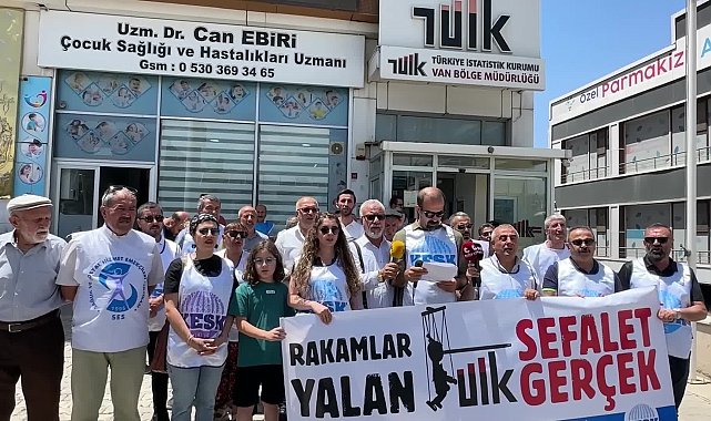 (VAN) - Kamu Emekçileri Sendikaları Konfederasyonu (KESK) üyeleri, bugün enflasyon oranlarını açıklayan Türkiye İstatistik Kurumunu (TÜİK) protesto etti. Eğitim Sen Van Şube Başkanı Murat Atabay, kurum verilerinin gerçeği yansıtmadığını belirterek, “TÜİK rakamları yalan, yoksulluk gerçek” dedi.