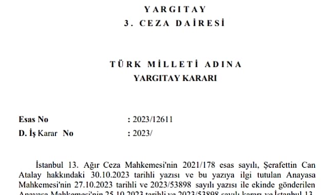 Yargıtay 3. Ceza Dairesi, Anayasa Mahkemesi'nin TİP Hatay Milletvekili Can Atalay hakkında verdiği “seçilme hakkı” ve “kişi hürriyeti ve güvenliği” haklarının ihlal edildiği yönündeki kararına uyulmamasına hükmetti. Daire, “yargısal aktivizm” yapmakla suçladığı ihlal kararı yönünde oy kullanan AYM üyeleri hakkında suç duyurusunda bulundu. Daire aynı zamanda Atalay'ın milletvekilliğinin de düşürülmesi işlemlerine başlanması için kararı TBMM Başkanlığı'na gönderdi. Yargıtay’ın, Anayasa Mahkemesi üyeleri hakkındaki suç duyurusunda bulunma kararı Türkiye’de ilk kez yaşanıyor.Anayasa Mahkemesi'nin (AYM) hakkında ihlal kararı verdiği TİP Hatay Milletvekili Can Atalay ile ilgili kararı yerel mahkemesi olan İstanbul 13. Ceza Mahkemesi'ne gönderilmişti. Mahkeme, dosyada karar verme yetkisinin Yargıtay 3. Ceza Dairesi'nde olduğunu belirtmişti. Dosyayı inceleyen Yargıtay 3. Ceza Dairesi, önceki kararının doğru olduğunu belirterek Anayasa Mahkemesi'nin ihlal kararına uyulmamasına hükmetti.“MİLLETVEKİLLİĞİ DÜŞÜRÜLSÜN”Daire, Anayasa'nın 76. maddesinde sayılan milletvekilliği ile bağdaşmayan suçlardan kurulan mahkumiyet hükmünün milletvekilliğini düşüreceği, Anayasa'nın 84/2 maddesi yönünden Anayasa Mahkemesi'ne müracaat imkanı tanınmadığı, Anayasa Mahkemesi'nin bu konuda inceleme yetkisinin de bulunmadığı gözetilerek; hükümlü Şerafettin Can Atalay'ın milletvekilliğinin düşürülmesine yönelik işlemlere başlanması için kararın bir örneğinin TBMM Başkanlığı'na gönderilmesine karar verdi.Daire aynı zamanda hak ihlalinin kabulü yönünde oy kullanan AYM üyelerinin anayasa hükümlerini ihlal ettiğini ve kendilerine verilen yetkinin sınırlarını yasal olmayacak şekilde aştığını savunarak haklarında Yargıtay Cumhuriyet Başsavcılığı’na suç duyurusunda bulunulmasına hükmetti. Daire, dosya üzerinden yapılan inceleme neticesinde mütalaaya uygun olarak, dosyanın İstanbul 13. Ağır Ceza Mahkemesi’ne gönderilmek üzere Yargıtay Cumhuriyet Başsavcılığı’na tevdiine oybirliğiyle karar verdi.“TCK 302, 307, 309, 311, 312, 313, 314, 315 VE 320’NCİ MADDESİNDEKİ SUÇLAR ANAYASA’NIN 14. MADDESİ KAPSAMINDA DEĞERLENDİRİLMELİ YOKSA MURAT KARAYILAN DA ADİL ÖKSÜZ DE MECLİS’E GİRER”Daire kararının gerekçesinde kalın (bolt) yazı fontuyla şu gerekçeyi belirtti:“Anayasa'nın 14. maddesinde, ‘Devletin ülkesi ve milletiyle bölünmez bütünlüğünü bozma'’ ve '’insan haklarına dayanan demokratik ve laik Cumhuriyeti ortadan kaldırmayı amaçlayan faaliyetlerde bulunma'’ şeklinde çerçevesi çizilen faaliyetler konusunda 3713 sayılı Kanun'un terör ve terör suçları tanımında aynı kavram ve kurumlara vurgu yapıldığı ve TCK'da düzenlenen Anayasayı ihlal suçunun unsurları ve madde gerekçesinde özellikle Anayasa'nın başlangıç hükümlerine yaptığı atıf ve korunan hukuki yarar birlikte değerlendirdiğinde; Anayasa'nın 14. maddesinin yargı organlarının kararları ile belirlilik ve öngörülebilirliği sağlayacak şekilde yorumlamaya elverişli olmadığını söylemenin isabetsiz olduğu ve açık bir şekilde TCK'nın 302, 307, 309, 311, 312, 313, 314, 315 ve 320. maddeleri ile 310. maddesinin birinci fıkrasında yazılı suçların, Anayasa'nın 14. maddesi kapsamında değerlendirilmesi gerektiği kanaatine varılmıştır. Aksi halde, Türkiye Cumhuriyeti'nin devleti ve milletiyle bölünmez bütünlüğüne kasteden, pek çok kanlı terör eylemi ile irtibatlandırılan ve haklarında yukarıda sayılan mutlak terör suçlarından soruşturma veya kovuşturma bulunup, henüz yakalanamayan ve kırmızı bültenle aranan Fethullah Gülen, Şerif Ali Tekalan, Recep Uzunallı, Adil Öksüz, Ekrem Dumanlı, Cemil Bayık, Murat Karayılan, Duran Kalkan, Sabri Ok ve Ali Ekber Doğan ve bunlar gibi şüpheli ya da sanıkların, milletvekili seçilmelerinin, yemin ederek göreve başlamalarının ve TBMM'ye girmelerinin önü açılır ki bu durumun hukuken isabetli olduğunu savunmanın izahı kabil olduğunu söylemek mümkün değildir.”“AYM, KENDİNİ SÜPER TEMYİZ MAHKEMESİ YERİNE KOYMUŞTUR”Anayasa'nın 14. maddesinde sayılan durumlar kapsamındaki mutlak terör suçu olan Türkiye Cumhuriyeti hükümetini ortadan kaldırmaya teşebbüs etme suçu nedeniyle Anayasa'nın 83/2 maddesinde düzenlenen yasama dokunulmazlığından faydalanamayacak olan hükümlü Şerafettin Can Atalay hakkında kurulan mahkumiyet hükmü yönünden temyiz incelemesi tamamlanmış olup; bireysel başvurunun yeni bir itiraz veya temyiz yolu olmadığı ve Anayasa Mahkemesi'nin Yargıtay gibi yüksek bir mahkemenin kararını her türlü hukuka aykırılık sorunu yönünden inceleyebilecek olan bir süper temyiz makamı olmadığı halde, temyiz mahkemesi olan Dairemizin kararını, yeniden yargılama görüntüsü altında dosyanın esasına da girip, adeta bozmak suretiyle kendisine yasal dayanaktan yoksun, gereğinden fazla ve yasal yetkisini aşacak şekilde anlam yüklediği anlaşılmıştır.”“KONUYU DÜZENLEYEN ANAYASA'NIN 84/2 MADDESİ AÇISINDAN ANAYASA MAHKEMESİ'NE MÜRACAAT İMKÂNI TANINMADIĞI GİBİ ANAYASA MAHKEMESİ'NİN BU KONUDA DA İNCELEME YETKİSİ BULUNMAMAKTADIR”Kaldı ki, Anayasa Mahkemesi temyiz incelemesi sonucu verdiği Dairemizin 28.09.2023 tarihli ve 2023/12611 Esas 2023/6359 Karar sayılı infazı kabil ve kesinleşmiş kararını dikkate almaksızın inceleme yaptığı belirlenmiştir. Ayrıca, hakkındaki kesin hüküm TBMM'ye bildirildiğinde, bu husus Genel Kurul'a sunulmak suretiyle milletvekilliğinin derhal düşürülmesine dair karar verilmiş olması gerektiği halde, her ne kadar süreç içerisinde TBMM tarafından bu hususta bir karar verilememiş olsa da bu konuyu düzenleyen Anayasa'nın 84/2 maddesi açısından Anayasa Mahk