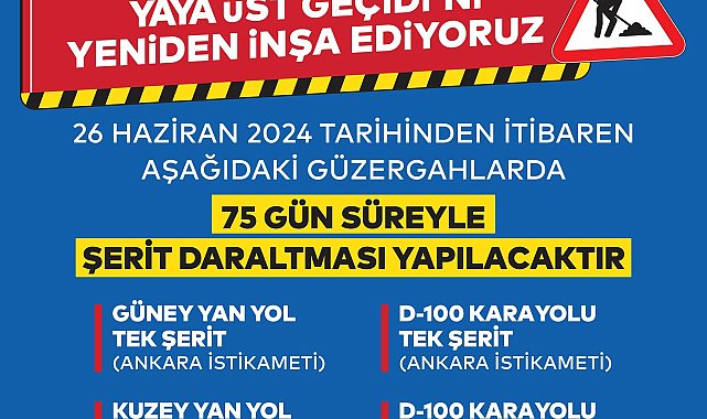 (İSTANBUL)- İstanbul'un en önemli ulaşım hatlarından birinin üzerinde bulunan Yenibosna Metrobüs İstasyonu Yaya Üst Geçidi'nde 75 gün sürecek yenileme çalışması yapılacak. İstanbul Büyükşehir Belediyesi (İBB) 26 Haziran tarihinde başlayacak çalışma için yan yollardan bir, anayoldan da bir şeritte daralma olacağını açıkladı.İBB, 26 Haziran tarihinden itibaren Yenibosna Metrobüs İstasyonun Yaya Üst Geçidi’nin teknik ömrünü tamamladığı ve yaya kapasitesini karşıladığı için yenileneceğini duyurdu. Fen İşleri Daire Başkanlığı tarafından yapılacak olan üst geçidin yenilenme süresi 75 gün. İBB sosyal medya hesabı X’den yaptığı duyuruda yan yollardan 1 bir şerit, anayol dan da 1 şeritte daralma olacağı belirtildi. Yapılan açıklama şöyle: “26 Haziran 2024 tarihinden itibaren aşağıdaki güzergahlarda 75 gün süreyle şerit daraltması yapılacaktır.Güney Yan Yol Tek Şerit (Ankara istikameti)Kuzey Yan Yol Tek Şerit (Edirne istikameti)D-100 Karayolu Tek Şerit (Ankara istikameti)D-100 Karayolu Tek Şerit (Edirne istikameti)”