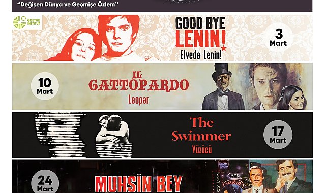 İzmir Büyükşehir Belediyesi, dünyanın dört bir yanından sinema eserleriyle keyifli bir yolculuk yapma şansını, İzmirli sanatseverlere sunuyor. "Yeniden Sinematek" gösterimlerinde Mart ayında “Değişen Dünya ve Geçmişe Özlem” temasıyla ödüllü dört film, iki ayrı merkezde ücretsiz olarak gösterime girecek. “Elveda Lenin!”, “Leopar”, “Yüzücü ” ve “Muhsin Bey” filmleri izleyenlere unutulmayacak anlar yaşatacak. Film gösterimleri Kültürpark İzmir Sanat ve Seferihisar Kültür Merkezi’nde ücretsiz olarak gerçekleştirilecek. Ayrıntılı bilgiye, 'kultursanat.izmir.bel.tr' adresinden ulaşılabiliyor.