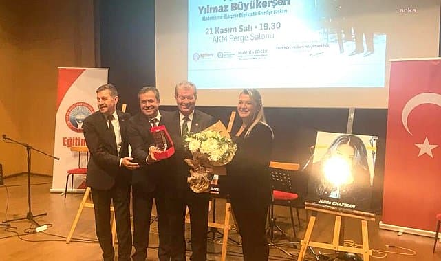 Eğitim-İş Sendikası Antalya Şubesi ve Antalya Büyükşehir Belediyesi’nin birlikte düzenlediği 15’inci Başöğretmen Atatürk Onur Ödülü, Eskişehir Büyükşehir Belediye Başkanı Yılmaz Büyükerşen’e verildi.Millet mekteplerinin açılışı ve Gazi Mustafa Kemal Atatürk'e Başöğretmen unvanı verilişinin 95'inci yılında, 15'inci Başöğretmen Atatürk Onur Ödülü, Cumhuriyet değerlerine sahip çıkarak korunmasına yönelik çalışmaları dolayısıyla Eskişehir Büyükşehir Belediye Başkanı Yılmaz Büyükerşen'e verildi.Antalya AKM Perge Salonu’nda düzenlenen törende Büyükerşen'in ödülünü, Başkanvekili Mustafa Önder aldı. Önder, törende yaptığı konuşmada anlamlı ödül için teşekkür ederek, “Atatürk ilkelerine bağlı Cumhuriyet sevdalısı siz değerli eğitimciler; laik demokrat, insan haklarına saygılı, daha iyi yaşanabilir bir gelecek için Cumhuriyetimizin güvencesi evlatlarımız sizlere emanettir. Gerek vizyonu, gerekse misyonuyla örnek alınan, ulusal ve hatta uluslararası başarılarıyla takdir toplamış, yurt çapında ulusun her bir noktasında hizmette görev alan on binlerce öğrenci yetiştirmiş, yaşamı insana hizmetle geçen, önce insan ve eğitim diyen insanı merkeze koymuş, öncelikle Eskişehir ve ardından yurt sevdalısı Sayın Hocam Yılmaz Büyükerşen’in önem arz eden ödülle taltif edilmesi gurur vericidir. Başöğretmen Atatürk Onur Ödülünü Yılmaz Hocam adına alırken, şahsım ve öğrencisi olmaktan şeref, vekili olmaktan gurur duyduğum Büyükşehir Belediye Başkanım Prof. Dr. Yılmaz Büyükerşen’in saygı, selam ve sevgilerini sunuyor, sizleri muhabbetle kucaklıyorum” dedi.Konuşmaların ardından tören, çektirilen fotoğrafla tamamlandı.