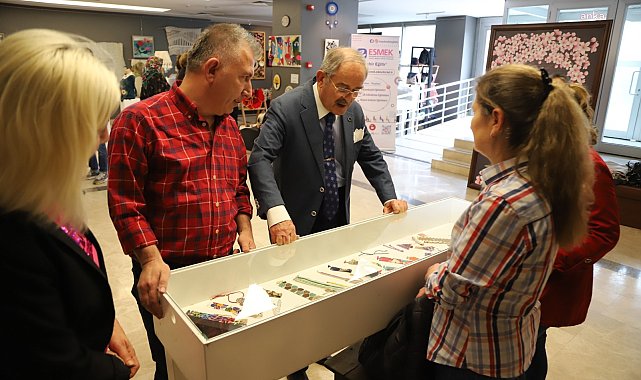 Eskişehir Büyükşehir Belediye Başkanı Yılmaz Büyükerşen, ESMEK kursiyerlerinin oluşturduğu 'Yeniden Doğuş ve Bahar' temalı Yansımalar Sergisi’ni ziyaret ederek eserleri inceledi.Eskişehir Büyükşehir Belediyesi Sanat Meslek Eğitim Kursları (ESMEK) kursiyerlerinin oluşturduğu ve bir gelenek haline gelen dönem sonu el sanatları karma sergisi ‘Yansımalar’, ziyaretçilerini ağırlamaya devam ediyor.“Yeniden Doğuş ve Bahar” temalı 900’den fazla ürünün sergilendiği, Büyükşehir Belediyesi Atatürk Kültür Sanat ve Kongre Merkezi’ndeki sergiye sanatseverler büyük ilgi gösterirken, Büyükşehir Belediye Başkanı Yılmaz Büyükerşen de bir ziyarette bulundu.Büyükşehir Belediyesi Genel Sekreteri Ayşe Ünlüce ile birlikte sergiyi gezen ve eserleri yakından inceleyen Büyükerşen, kursiyerleri ve eğitmenleri tebrik etti.Kadınların el emeği göz nuru eserlerini görmekten mutluluk duyduğunu belirten Başkan Büyükerşen, “Kursiyerlerin ortaya çıkardığı bu güzel eserler nedeniyle hem onları hem de eğitmenleri kutluyorum. ESMEK 2001 yılından bugüne 270 binden fazla kursiyere eğitim verdi. ESMEK, 9’u kırsal bölgede olmak üzere toplam 16 farklı kurs merkezi ile hizmetlerini sürdürüyor. Sadece kent merkezi değil ESMEK’leri Alpu, Beylikova, Çifteler, İnönü, Mahmudiye, Mihalgazi, Sarıcakaya ve Sivrihisar ilçelerimize de açarak hizmet vermeye devam ettik. Sadece 2023 yılında ESMEK kurslarından 266 branşta yaklaşık 21 bin kursiyer faydalandı. Yansımalar sergimizin oluşmasında emeği geçen herkesi tekrar kutluyorum. Herkesi bu güzel sergiyi 2 Haziran’a kadar görmeye davet ediyorum” dedi.Büyükerşen günün anısına çektirilen fotoğraf ile ziyaretini tamamladı.