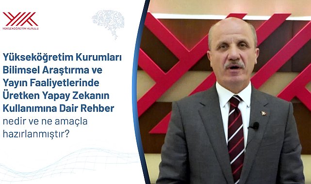 korunması açısından son derece önemli olduğunu belirtti. Yükseköğretim kurumlarının ve bilim insanlarının akademik çalışmalar ve bilimsel üretimde etik standartların korunması ve geliştirilmesinde topluma karşı sorumluluk taşıdıklarını belirten Özvar, “ÜYZ’nin bilimsel araştırma ve yayınlarda kullanımı ile ilgili kararlarda bilim, teknoloji ve etik belli bir dengeye oturtulmak zorunda. Yükseköğretimde ÜYZ kullanımı, bünyesinde pek çok fırsatın yanı sıra çeşitli riskleri de barındırıyor. Bu rehber hızla gelişen ÜYZ alanındaki riskleri ve fırsatları anlamaya, değerlendirmeye, risklere karşı önlem almaya katkı sağlamak üzere yükseköğretim kurumlarını bilgilendirmek amacıyla hazırlandı” dedi.“ALAN UZMANI HOCALARDAN OLUŞTURULAN KOMİSYON TARAFINDAN HAZIRLANDI"Rehberin hazırlık sürecinde ÜYZ’nin yükseköğretime sunduğu fırsatları ve ortaya çıkardığı tehditleri anlamaya yönelik çalıştaylar düzenlediklerini, akademisyenlerin ve iş dünyasının görüşlerinin alındığını vurgulayan Özvar, şu bilgileri verdi:“İlk olarak Orta Doğu Teknik Üniversitesi’nde ‘Yükseköğretimde Üretken Yapay Zekâ: Fırsatlar ve Tehditler’ başlıklı çalıştay düzenledik. Sonrasında, İstanbul Teknik Üniversitesi’nde iş dünyasından teknoloji profesyonellerinin katılımıyla ‘Yükseköğretimde Üretken Yapay Zekâ: YÖK-Sektör Buluşması’ toplantısı gerçekleştirildi. Alan uzmanı hocalarımızdan oluşturulan bir komisyon tarafından hazırlanan rehber taslağı çeşitli üniversitelerimizden hocalarımızın da görüşleri alındıktan sonra Genel Kurulumuza sunuldu. Genel Kurul üyelerimizin de katkılarıyla rehbere son hali verildi.”“ÜNİVERSİTELERİMİZ KENDİ İHTİYAÇLARI DOĞRULTUSUNDA DÜZENLEMELER YAPABİLİR”Özvar, rehberde yer alan etik değer ve ilke ve tavsiyelerin üniversitelere rehberlik etmesini umut ettiklerini belirterek şöyle devam etti:“Yaşadığımız bu dinamik süreçte, önümüzdeki dönemde gelişmelere bağlı olarak üniversitelerimiz bu rehberi kullanarak yapay zekanın yalnızca bilimsel araştırma faaliyetlerinde değil aynı zamanda derslerde kullanımına yönelik kendi ihtiyaçları doğrultusunda düzenlemeler yapabilirler.”“ŞEFFAFLIK, DÜRÜSTLÜK, ÖZEN, ADALET, GİZLİLİK, HESAP VEREBİLİRLİK”Başlıca dört başlıktan oluşan rehberde “ÜYZ’nin Bilimsel Araştırma ve Yayınlarda Kullanımının Etik Boyutu” başlığı altında; ‘ÜYZ’nin Amaç ve Kapsamı, Dayandığı ve Tehdit Ettiği Etik Değerler’ ile ‘Bilimsel Doğruluk ve Dürüstlük Açısından Taşıdığı Riskler’ ele alınıyor. İkinci başlıkta, “ÜYZ Kullanımında Temel Etik Değer ve İlkeler” adı altında; “Şeffaflık”, “Dürüstlük”, “Özen”, “Adalet ve Saygı”, “Gizlilik ve Mahremiyetin Korunması”, “Hesap Verebilirlik ve Sorumluluk Üstlenme” ve “Etik iklime katkıda bulunma” gibi ilke ve değerler açıklanıyor. Üçüncü başlıkta, “ÜYZ Kullanımında Karşılaşılabilecek Önemli Bazı Riskler ve Başlıca Etik Sorunlar” sıralanırken “ÜYZ Sistemlerinin Kullanımında Bazı Önemli Tavsiyeler” ve “Sık Sorulan Sorular”la rehber tamamlanıyor.Yükseköğretim Kurumları Bilimsel Araştırma ve Yayın Faaliyetlerinde Üretken Yapay Zekâ Kullanımına Dair Etik Rehber’e buradan ulaşılabilir: https://www.yok.gov.tr/Documents/2024/yapay-zeka-kullanimina-dair-etik-rehber.pdf
