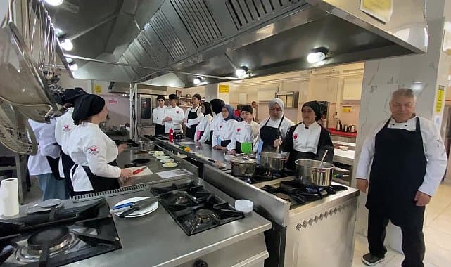 "Şu anda eğitim mutfağımızda daha önce teorik olarak aldığı bilgileri arkadaşlarımız uygulamalı olarak yerine getiriyorlar. Mutfağımızda Türk mutfağı, dünya mutfakları, pişirme teknikleri, pastacılık teknikleri, süt ve süt ürünleri dersleri gibi pratik ve teorik dersler işleniyor. Burada öğrencilerimiz sektöre hazırlık anlamında sektörde ne gerekiyorsa onları öğreniyorlar. Bölümümüzde toplamda 102 öğrencimiz var. Öğrencilerimiz mezun olduktan sonra kamu kurumlarında KPSS ile iş bulabildikleri gibi özel sektörde de kafe, restoran, otel gibi işletmelerde rahatlıkla iş bulabiliyorlar. Programımız doluluk oranı 102 kişi var şu anda, doluluk oranı da tam dolu. 55 öğrencimiz var birinci sınıfta. İkinci sınıflarda da 48 öğrencimiz var. İlgi çok büyük, her geçen gün sayı artıyor. Daha fazla alabiliriz ama bizim mutfak kapasitemiz yeterli olmadığı için şu anda 50 kişiyle sınırlamış bulunuyoruz. 2019 yılından beri eğitim veriyoruz. 20 öğrenciliğe başladık. Şu anda dediğim gibi 50 öğrenciyle devam ediyoruz bölümlerde. Burada Türk mutfağı, dünya mutfakları yemeklerini öğreniyoruz. Yine yöresel yemekleri öğreniyorlar. Doğrama teknikleri, pişirme pislikleri gibi mutfakta gerekli olan bilgi ve beceriyle kazanıp mezun oluyor, öğrencilerimiz."
