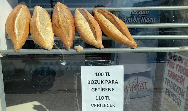 (YOZGAT) – Yozgat’ta ekmeğin 8 liradan, parmak çörek ve pidenin 9 liradan işlem görmesi, bozuk para sıkıntısını da beraberinde getirdi. Yozgat’ın Yerköy ilçesinde bir fırın sahibi müşterilerine para üstü olarak verecek madeni para bulamayınca, 100 lira madeni para getirenlere 110 lira ödeyerek, sorununu çözmeye çalışıyor.