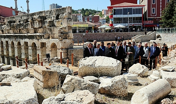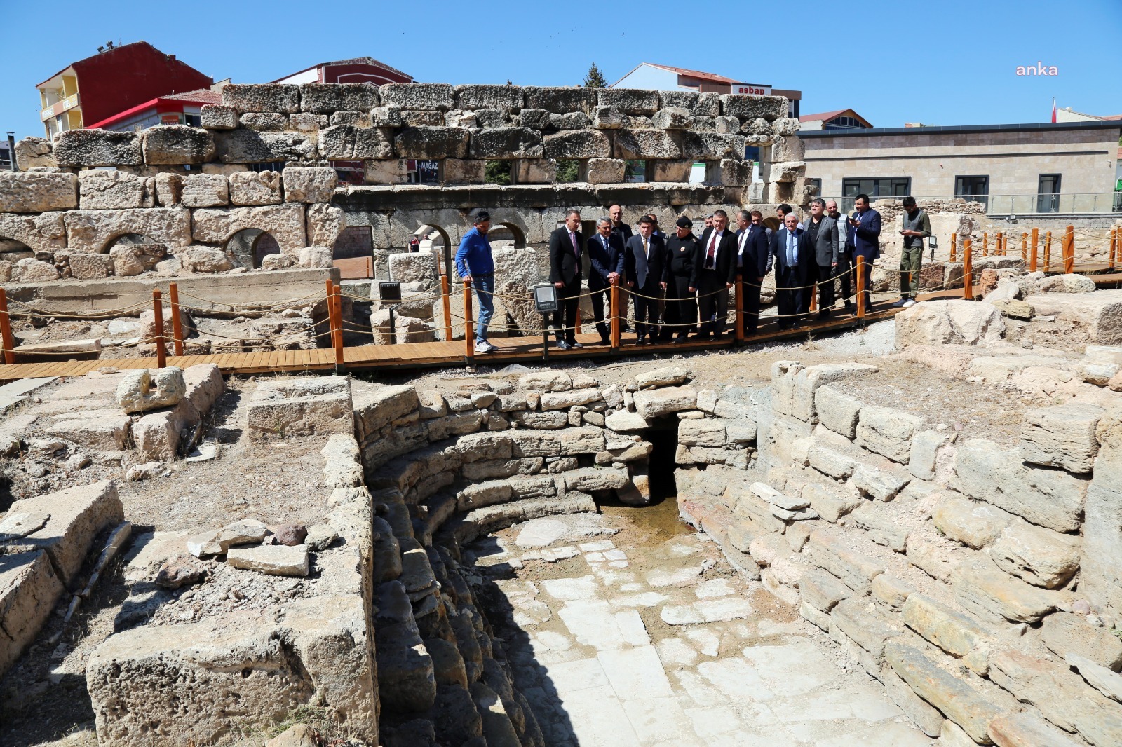 Yozgat Valisi Mehmet Ali Özkan, Roma Hamamı kalıntılarının bulunduğu alanda yapılan çevre düzenleme çalışmalarını inceledi, Yozgat İl Kültür ve Turizm Müdürü Hüseyin Çiftçi'den bilgi aldı.