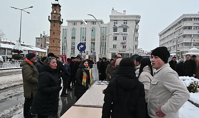 Akşam yağan kar yağışının ardından okulların tatil edildiği Yozgat’ta, Turizm, Otelcilik Okulu öğrencileri tarafından hazırlanan arabaşı çorbası, Cumhuriyet Alanı’nda kurulan stantta vatandaşlara dağıtıldı. Vatandaşlar, ikram olan arabaşı çorbasından alabilmek için kuyruğa girdi.