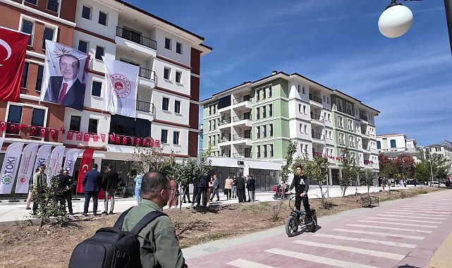 (YOZGAT) - Yozgat’ta yapımı tamamlanan Menekşe Evleri TOKİ Konutları'nın anahtar teslim töreni, AK Parti Yozgat Milletvekili Abdulkadir Akgül ve AK Parti Yozgat İl Başkanı Hasan Kandemir’in ev sahipliğinde gerçekleştirildi. 53 bin 367 metrekarelik alan üzerine inşa edilen, 14 blokta toplam 301 daire ve 22 iş yerinin bulunduğu binaların anahtarları hak sahiplerine teslim edildi.