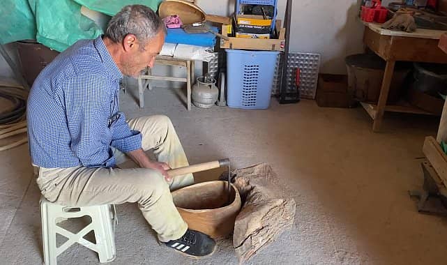 Yozgat’ın Kaşıkla köyünden 4 yaşında ayrılan, yaklaşık 4 yıl önce de tekrar dönüp babaevine yerleşen 63 yaşındaki Servet Topuz, iğde, dut ve ceviz ağacından saz yapma hobisini atölyeye dönüştürdü. Topuz, “Saz çaldığım için saz yapmaya bir merakım vardı, ağaç işlerine. Onun için de köyde hobi olarak iğde ağcı, ceviz ağacı, dut ağacı buldum, onları oyarak saz yapmaya başladım" dedi.