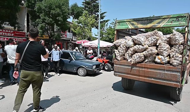 İlçeye bağlı Kazankaya köyünde çiftçilik yapan Ahmet Suphi Uslu, sesini yetkililere duyurabilmek için bir traktör römorku dolusu patatesi ilçe merkezine getirip, ücretsiz dağıttı.