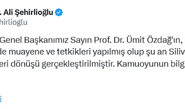 (ANKARA)- Zafer Partisi'nin tutuklu Genel Başkanı Ümit Özdağ, Ankara 26. Ağır Ceza Mahkemesi'nde görülmekte olan iki davasına avukatı aracılığı ile mazeret bildirerek katılmadı. Özdağ'ın hastanedeki rutin kontrolleri nedeniyle duruşmaya katılamadığı öğrenildi. Konuya ilişkin Zafer Partisi Genel Başkan Vekili Ali Şehirlioğlu, "Zafer Partisi Genel Başkanımız Sayın Prof. Dr. Ümit Özdağ'ın, Silivri Devlet Hastanesi'nde muayene ve tetkikleri yapılmış olup şu an Silivri Cezaevi'ne geri dönüşü gerçekleştirilmiştir" dedi.Silivri'deki Marmara Cezaevi'nde tutuklu bulunan Zafer Partisi Genel Başkanı Ümit Özdağ hakkında, "Libya'da görev yapan MİT mensuplarının kimliklerini deşifre ettiği" gerekçesiyle ve HDP’nin şikayeti üzerine "hakaret" suçundan açılan iki ayrı davanın ilk duruşmaları görüldü.Duruşmalara, Özdağ ve avukatları mazeret bildirerek katılmadı. Özdağ’ın duruşmaya, hastanede rutin kontrolü olduğu için katılamadığı öğrenildi. Ankara 26. Ağır Ceza Mahkemesi'ndeki iki ayrı dava da 8 Temmuz’a bırakıldı. Zafer Partisi Genel Başkan Vekili Ali Şehirlioğlu, sosyal medya hesabından yaptığı paylaşımda Özdağ'ın sağlık durumuna ilişkin bilgi verdi. Şehirlioğlu, şu ifadeleri kullandı:"Zafer Partisi Genel Başkanımız Sayın Prof. Dr. Ümit Özdağ'ın, Silivri Devlet Hastanesi'nde muayene ve tetkikleri yapılmış olup şu an Silivri Cezaevi'ne geri dönüşü gerçekleştirilmiştir. Kamuoyunun bilgisine sunulur."