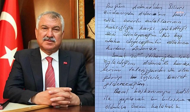 (İSTANBUL) - Tutuklanmasının ardından Adana Büyükşehir Belediye Başkanlığı görevinden uzaklaştırılan Zeydan Karalar, "Adana'nın başı dik, onurlu evlatlarının haksızlığa karşı yükselttiği sesi dinleyeceğim" diyerek Adana'da düzenlenecek mitingi Silivri'den izleyeceğini ifade etti.Karalar'ın sosyal medya hesabından, el yazısıyla yazdığı not paylaşıldı. Notta şu ifadeler yer alıyor:"Bugün Silivri zindanında Adana'nın başı dik, onurlu evlatlarının haksızlığa karşı yükselttiği sesi dinleyeceğim. Bir kez daha diyeceğim ki; Allah'ına kurban Adanam! Saat 20.00 itibarıyla, çok özlediğim Adanalı kardeşlerimi televizyondan da olsa görüp sizlerle hasret gidereceğim. Genel Başkanımızın katılımıyla yapılacak bu buluşma oldukça önemli. Kalabalık katılımınızdan dolayı teşekkür ediyorum. Sevgi ve saygılarımla..."