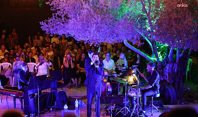 (İZMİR) - Her yıl Ahmed Adnan Saygun Sanat Merkezi bahçesindeki zeytin ağacının altında düzenlenen konser serisi, “Zeytin Altında Caz Tolga Bilgin Quartet” ile devam etti. Türkiye’nin önde gelen caz trompetçilerinden Tolga Bilgin’in yer aldığı quartet, sanatseverlere unutulmaz bir akşam yaşattı.İzmir Büyükşehir Belediyesi Ahmed Adnan Saygun Sanat Merkezi, “Zeytin Altında Caz Tolga Bilgin Quartet” gösterisini, İzmirli sanatseverlere buluşturdu.Her yıl merkezin bahçesinde bulunan zeytin ağacının altında yapılan konser serisi, bu kez caz ezgileriyle İzmirlilerle buluştu.Trompette Tolga Bilgin, kontrbasta Selim Gürcan, davulda Bora Peynirci ve piyanoda Devrim Yeşilpınar’ın yer aldığı quartet, caz performansı sergiledi.