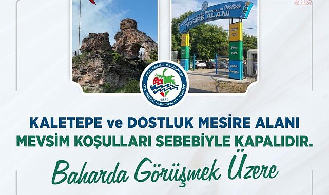 (ZONGULDAK) - Karadeniz Ereğli Belediyesi’nin işlettiği Dostluk Mesire Alanı ile Kaletepe mevsim koşulları nedeniyle bahar dönemine kadar ziyarete kapandı.Karadeniz Ereğli Belediyesi’nin işlettiği Dostluk Mesire Alanı ve Kaletepe bahara kadar kapandı. Bölgenin turizmi açışından önemli bir destinasyon olması ve doğal güzelliklerinin yanı sıra panoramik manzarası dolayısıyla da çok sayıda yerli-yabancı turist ve gezi grubunun ilgi odağı olan Kaletepe ile plajlar bölgesinde yer alan Dostluk Mesire Alanı, mevsim koşulları nedeniyle bugünden itibaren ziyarete kapandı.Şubat 2024'te belediyeye devredilerek halkın kullanımına açılan Kaletepe, bugüne kadar 50 bin kişiyi ağırladı.Plajlar bölgesinde yer alan Dostluk Mesire alanı ise yaz döneminde yoğun ilgi gördü. Kaletepe ve Mesire Alanı, bahar aylarına kadar ziyarete kapanırken, Kestaneci Piknik Alanı’nda faaliyetler devam edecek.
